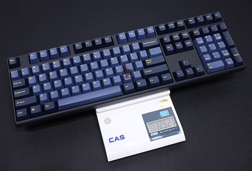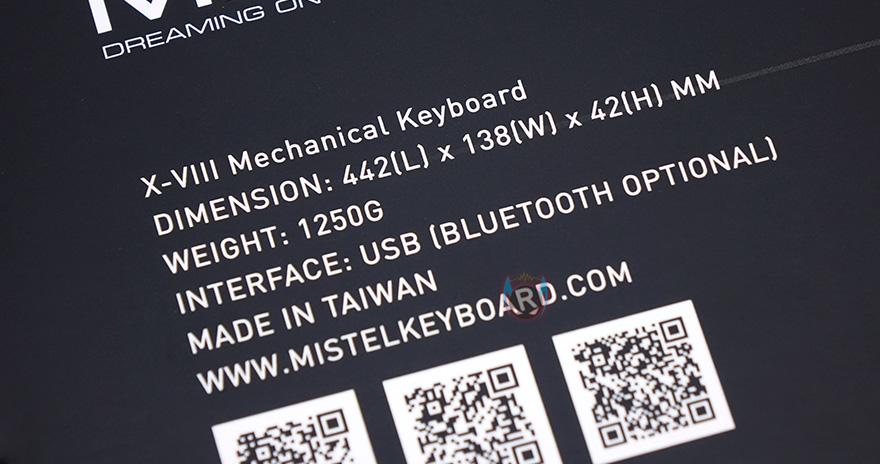 그럼, Mistel(미스텔) X-VIII 키보드를 살펴보면, 총 108키를 가진 풀-배열의 키보드로 기본 104키 외에 숫자키패드 위해 독립실행 부가기능 키로 4개의 키가 추가 배치되어 있는데, 음소거/볼륨조절/계산기 실행 기능입니다. 이런 기능적인 부분의 108키를 가장 많이 선보였던 곳이 대만의 D사 키보드죠. 무게는 약 1.25kg로 꽤 묵직한 느낌을 줍니다.