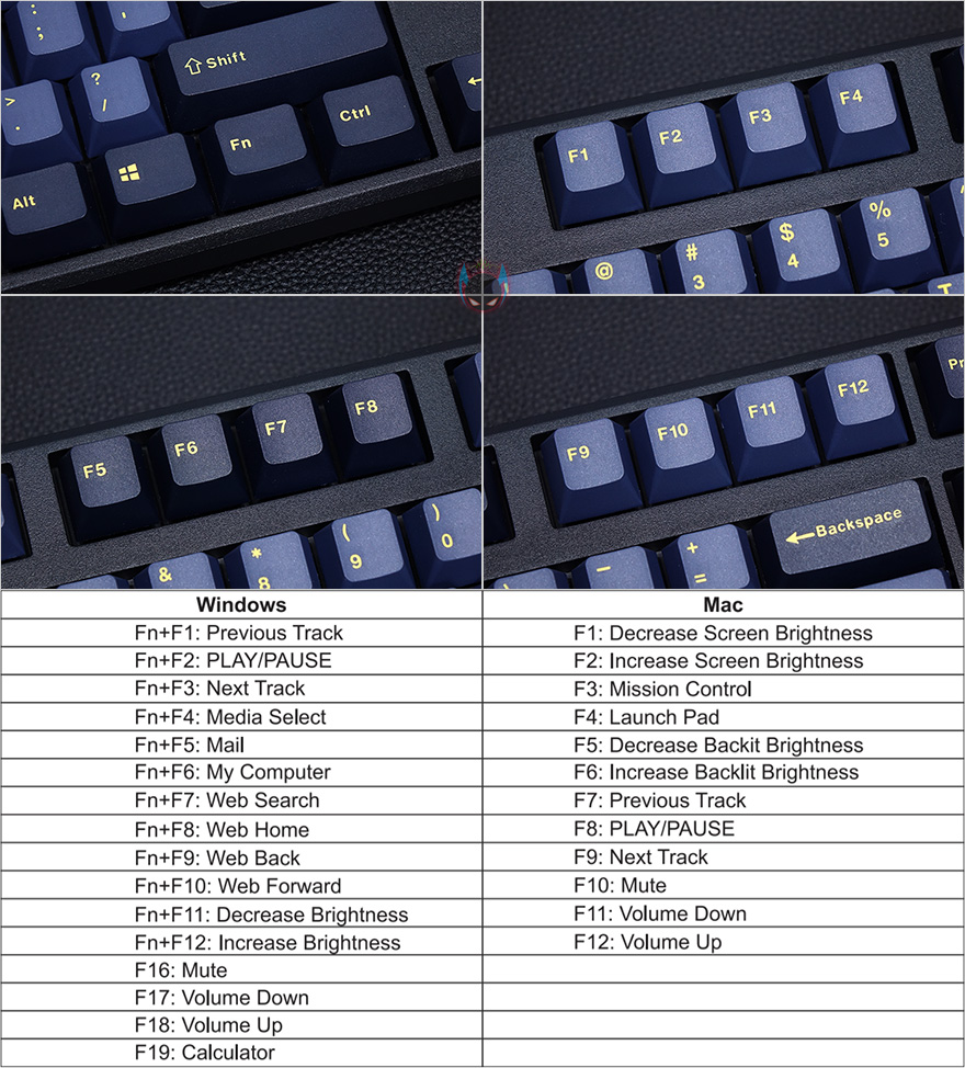 그리고, X-VIII 키보드 역시 Fn키를 갖추고 부가기능을 지원하는데, 모두 F1~F12키들과 조합으로 사용되며, 윈도우 운영체제와 맥 OS 운영체제에 따라 다르게 사용되게 완벽히 지원을 하고 있습니다. 참고로 밝기조절 기능은 노트북이나 모바일기기의 화면밝기 조절을 말하는 겁니다. 그리고, 키보드 측면에서 보면 타이핑에 최적화라 불리우는 스텝-스컬처2 단계배열도 갖추고 있는 것을 확인할 수 있죠.