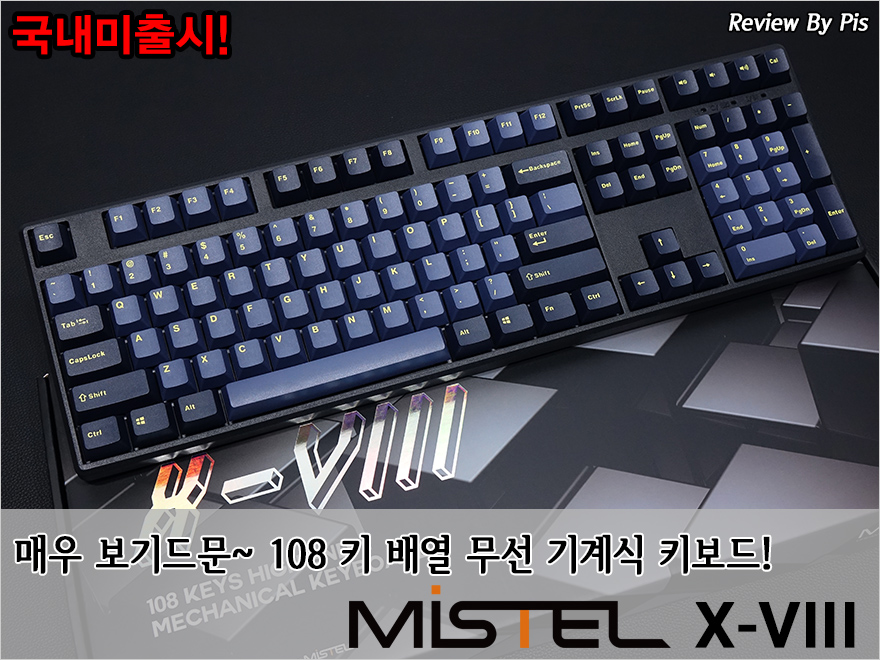 기계식키보드가 대중화되면서 이제는 다양한 컨셉의 기계식키보드 제품들이 나오고 있죠. 그래서, 소비자입장에서도 이제는 개인취향으로 선택할만큼 기계식키보드가 다양해졌습니다. 특히, 기계식키보드가 대중화되면서 기능적인 지원에서 가장 활성화가 늦은 부분이 바로 무선 지원인데, 이제 무선 지원도 기계식키보드에서 쉽게 찾아볼 수 있습니다. 하지만, 의외로 무선지원 기계식키보드는 대부분 텐키리스나 미니키보드인 경우가 많죠. 즉, 풀-배열 형태의 무선지원 기계식키보드가 흔하지 않다라는겁니다. 그래서, 최근에 Mistel(미스텔)에선 바로 이 풀-배열을 갖춘 무선지원 기계식키보드 X-VIII 모델을 출시했죠. 11월에 출시된 제품인만큼 당연히 국내에선 아직 출시되지 않았지만, 피스커뮤가 단독으로 입수해서 리뷰하게 되었습니다. 그럼, 한 번 살펴보도록 하죠~