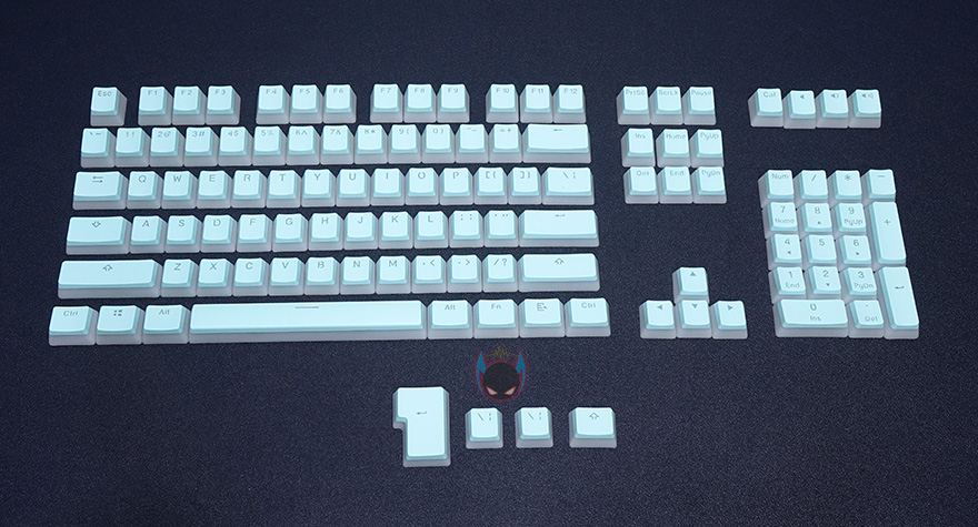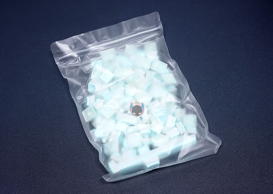 키-캡은 키보드의 액세서리 제품군에 속하기 때문에, 제품 포장은 크기 않죠. HK-Gaming 푸딩 키-캡 역시 마찬가지입니다. 박스 사이즈가 작으면서 간단히 제품명과 컨셉 문구 표기정도만 하고 있죠. 일단 제품명만 봐도 쉽게 알 수 있듯이 108키의 PBT재질 그리고 이중사출 키-캡 제품입니다. 기본적인 104 풀-배열이 추가로 4개의 키가 더해지는 108키 키보드까지 사용할 수 있다라는거죠. 포장은 간단하게 키-캡만 지퍼-백으로 포장되어 있습니다.