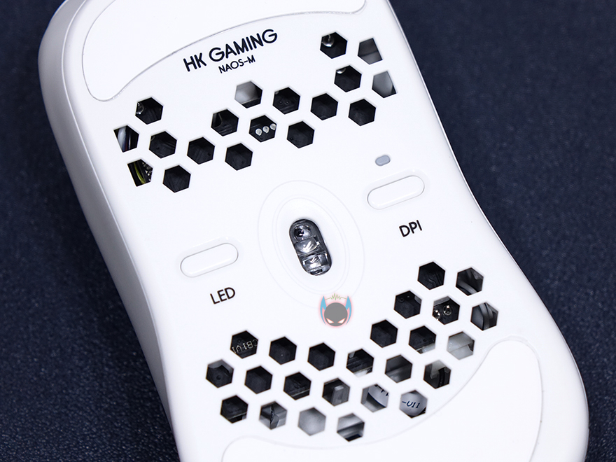 물론, 상반기 모델들처럼 휠-버튼에도 라이팅효과를 볼 수 있게 디자인 처리가 되어있으며, 휠-접지력을 위해 고무재질을 사용했고, 기본 좌우버튼 역시 상반기 모델들처럼 좌우 구분 설계로 커버를 적용했습니다. NAOS-M 역시 미들사이즈지만 초경량 컨셉을 가졌기 때문에 상판 부분들은 대부분 타공망 디자인으로 처리가 되어있습니다.