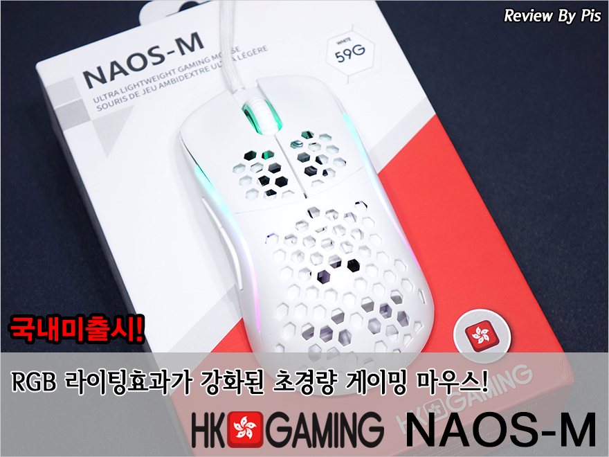 올해 게이밍 마우스시장의 트랜드 중 하나로 자리잡은게 바로 초경량 컨셉이죠. 기존의 가벼운 마우스라면 대략 8~90g를 언급했지만, 이제는 이보다 더 가벼운 마우스로 그것도 게이밍 컨셉으로 초경량 게이밍 마우스 제품들이 올해 많이 나오고 있습니다. 국내시장에는 아직 진출하지 않았지만, 이미 아마존 글로벌 쇼핑에 입점에 전세계적으로 판매되고 있는 HK-Gaming 역시 올해 상반기에 2가지 초경량 게이밍 마우스를 선보인적이 있었는데, 하반기에 또다른 초경량 게이밍 마우스 2종을 출시했죠. 이번 시간에는 그 중 하나인 NAOS-M을 한 번 살펴보도록 하겠습니다.