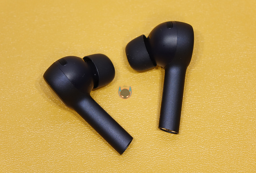 Air2 Pro 이어폰을 살펴보면, 커널형 이어폰 디자인으로 막대형태 디자인에 바깥쪽 터치부분은 유광처리를 해놨습니다. 개인적으로는 그냥 통일감있게 무광으로 했으면 좋지 않았을까 생각이 들더군요. 참고로, 충전케이스와 이어폰 재질 모두 세라믹 소재입니다. 그리고, 내부에 드라이버 유닛 크기가 12mm라 그런지 터치&유닛부분 크기가 좀 큰 편이고, 길이는 경쟁사들과 크게 차이가 없습니다. 또한, 유닛부분의 윗부분을 보면 베이스부분도 비교적 큰 편인 것을 확인할 수 있고, 액티브 노이즈 캔슬링(ANC) 효과를 볼 때 이부분 통해서 소음을 줄인다고 보면 되겠습니다.