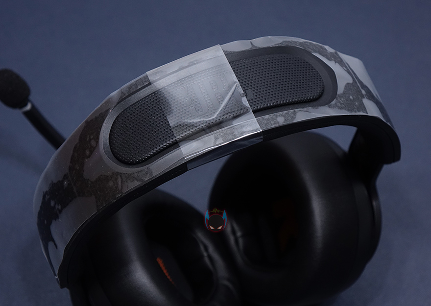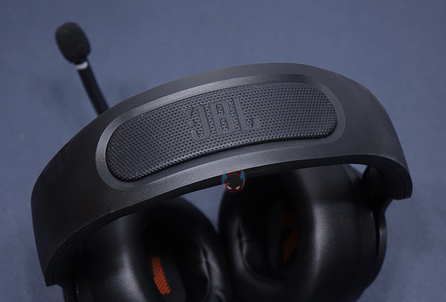 여기에 이어-컵과의 연결부위도 90도까지 회전이 가능하며, 이어-컵부분도 각도조절이 착용시 자동으로 이루어지도록 처리되어 있습니다. 이어-컵 바깥쪽부분에는 중앙에 JBL 로고처리는 해놨는데, 퀀텀 400 모델부터 LED효과인 퀀텀 라이팅 효과를 볼 수 있죠. 그리고, 주변부분들은 메탈릭 글로스인젝션으로 표면처리를 해서 고급스러운 느낌이 나도록 했습니다.