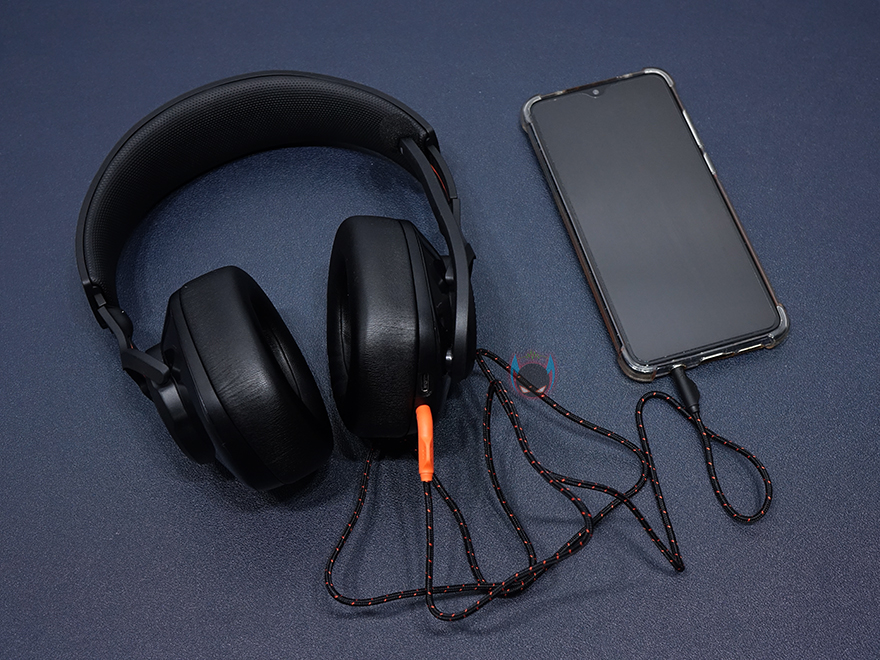 마지막으로 3.5mm 오디오케이블은 모바일기기에 연결해서 사용하면 되는데, 앞에서 확인한 퀀텀라이팅효과나 퀀텀엔진의 기능들은 사용할 수 없습니다. 헤드셋에 있는 볼륨조절만 사용할 수 있고, 헤드셋 자체의 사운드만 체감할 수 있는데, 대형 50mm 네오디뮴 드라이버유닛을 적용했기 때문에 기본적인 사운드질감은 나쁘지 않습니다. 베이스가 강할 때는 진동도 전달이 되죠. 그리고, 음향전문기업답게 사운드튜닝이 잘 되어있어서 어떤 환경에서 사용하더라도 일단 사운드가 날카롭지가 않습니다. 볼륨을 최대로 높여도 날카롭지 않기때문에 귀에 자극이 적은 느낌입니다. 퀀텀 게이밍 헤드셋 제품들의 임피던스 값이 32Ω인데, 볼륨을 최대로 해서 들어도 마치 32Ω 값보다 높은 헤드셋을 착용했을 때 사운드느낌이 들어서 개인적으로는 상당히 마음에 들었습니다. 물론, 저가형 헤드셋을 사용했던 사용자라면 자극적인 사운드를 그동안 들어서 최대 볼륨을 들어도 좀 작다라는 느낌이 들 수 있습니다. 하지만, 이게 JBL만의 퀀텀 시그니처 사운드이기도 합니다. 그래서, 전반적으로 게임이나 음악 모두에서 사운드 전달은 꽤 수준있는 느낌이라 생각이 들었습니다. 마이크 같은경우는 퀀텀 800 모델부터 ANC(액티브 노이즈 캔슬링)이 적용되어 있지만, 기본 마이크도 음성전달하는데 있어서는 불편함이 없기 때문에 대체적으로 무난했습니다.
