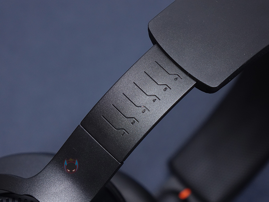 그럼, JBL 퀀텀 400 게이밍헤드셋 실물을 한 번 살펴볼까요? 전체적으로 블랙 색상을 가졌으며, 헤드밴드 기본 플라스틱 프레임을 바탕으로 바깥쪽 가운데 로고부분은 고무질감으로 마감을 했으며, 밴드 안쪽 그러니깐 착용부분은 PU소재의 인조가죽으로 쿠션 처리를 적용했습니다. 그리고, 당연히 밴드부분은 사용자 머리크기에 따라 길이 조절을 할 수 있는데, 처음 봤을 때는 밴드부분에 숫자 6까지 표기되어 있어서 당연히 6단계로 조절이 되겠구나 생각했는데, 실제 조절은 총 12단계로 조절됩니다. 걸리는 느낌이 12단계라는거죠. 총 35mm까지 늘어난다라는 점에서 상당히 디테일하게 단계조절을 해주는만큼 최적의 착용감을 선사해준다고 해석할 수 있겠죠.