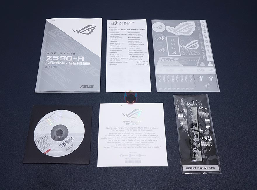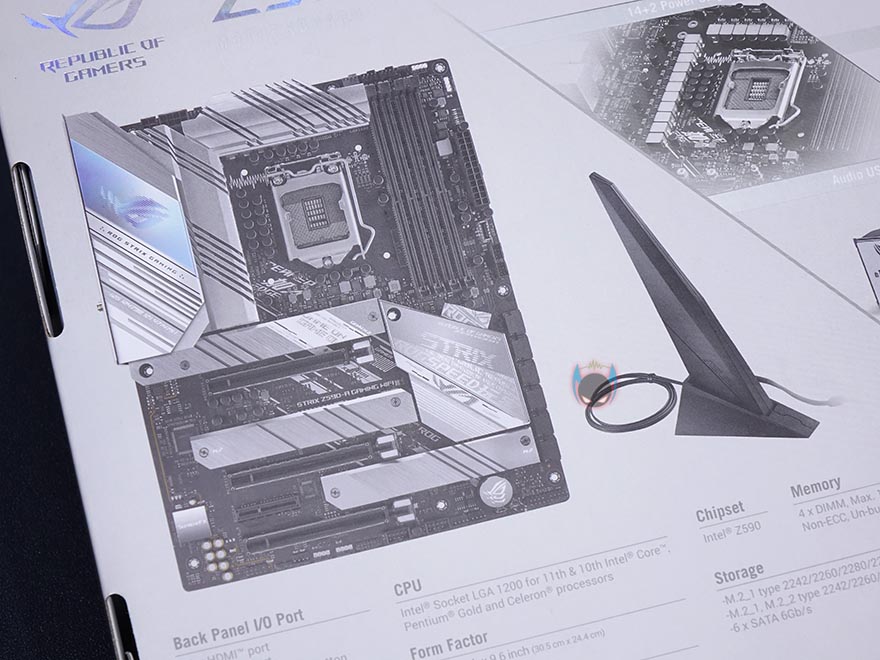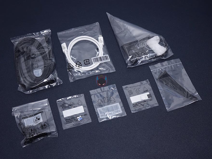 제품포장은 기본적으로 ROG Strix Z590-A Gaming WiFi 메인보드는 정전기 방지 보호비닐로 포장이 되어있으며, 제품설명서, 퀵가이드, 스피커, 드라이버CD, 감사카드, 키 체인의 부속품을 비롯해서, 실적으로 사용되는 S-ATA 케이블 4개, USB 타입C 케이블, Wi-Fi 듀얼밴드 안테나, 팬 홀더, M.2 고무패드 및 퀵-랜치, 소량의 케이블타이는 분실이 되지 않게 각각 분류되어 밀봉처리 되어 있습니다. 이전 세대 모델과 대표적인 차이라면 역시 Wi-Fi 지원으로 무선 안테나가 추가되었다라는 점이겠죠. 물론, 빠진 부분도 있는데, RGB 스트립 케이블입니다. 이제는 RGB 라이팅이 흔해졌기 때문에, 액세서리 제품으로 쉽게 구할 수 있죠.