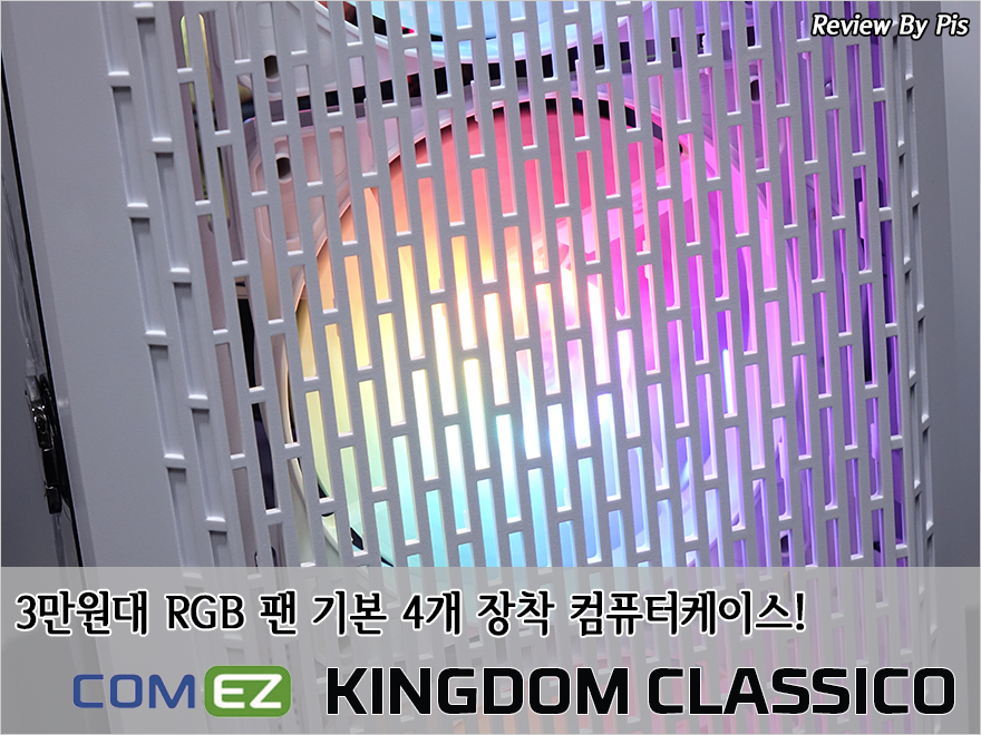 RGB라이팅 효과가 거의 필수적인 현 PC시장은 어느 부품들을 구입해도 볼 수 있습니다. 특히, PC케이스 시장은 이제는 경쟁이 치열할 정도로 RGB 팬이 없으면 오히려 끌리지 않는다고 할 수 있을정도죠. 이렇다보니 요즘 PC케이스 시장은 RGB 팬을 기본 장착해서 제공해주는 것은 물론이고, 가격경쟁도 치열해졌습니다. 그래서, 기본적인 부품들로 조립PC를 구상하는 분들에게는 저렴하면서 RGB 팬까지 장착된 PC케이스가 있다면 당연히 끌릴 수 밖에 없을 겁니다. 컴이지에서도 이런 PC케이스를 최근에 출시했는데, 바로, 킹덤 클라시코 제품이죠. 그럼, 3만원대로 출시된 컴이지 킹덤 클라시코 PC케이스를 한 번 살펴보도록 하겠습니다.