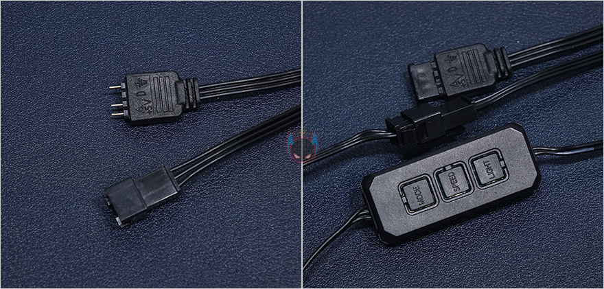 그럼, PCCooler GI-CX360 일체형 수냉쿨러를 장착해봐야겠죠. 제공되는 장착 설명서를 참고하면 어렵지 않게 장착할 수 으며, 순서를 크게 상관없습니다. 라디에이터에는 제공되는 120mm 팬을 장착해주고, 3개의 팬이 동일하게 속도조절이 되도록 할려면, 앞서 부속품에서 본 4-in-1 연장케이블로 3개의 팬 케이블을 연결해주면 되고, 팬의 RGB 케이블 역시 4-in-1 RGB 케이블로 연결해주고 워터블록의 RGB 케이블도 연결해주면 팬과 워터블록의 RGB 효과가 동일하게 작동됩니다. 또한, 메인보드의 RGB Sync와 연동하고 싶다면, 바로 5V ARGB 헤더에 연결해주면 되고, 만약 메인보드 RGB Sync 연동이 없다면, 제공되는 RGB 컨트롤 케이블로 연결해 사용하면 되겠습니다. RGB 컨트롤에는 모드전환, 모드 속도조절, 색상변경 기능이 탑재되어 있습니다.