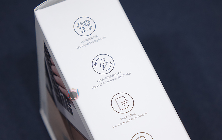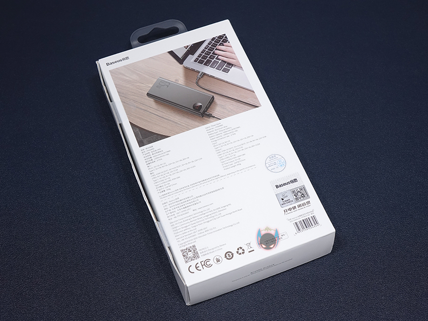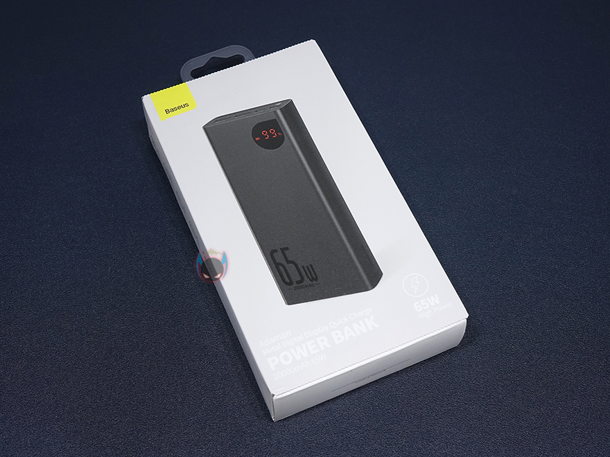 제품팩키지형태는 박스형태로서 기존 베이스어스(Baseus) 제품들과 마찬가지로 전면에 해당 제품의 이미지를 담고 있습니다. 이미지만 봐도 LED 디스플레이가 적용되었다라는 것을 미리 알 수 있고, Adaman 디스플레이 보조문구와 함께 모델명 그리고 이번 제품도 65W 고속충전을 지원한다라는 것을 알 수 있게 표기를 해놨습니다. 박스 측면에도 좀 더 제품의 주요 특징을 표기해놨는데, LED 디스플레이뿐만 아니라 PD3.0과 QC3.0 지원을 모두 하고 동시 지원한다라는 점, 2개의 입력과 3개의 출력포트, 배터리용량, 그리고 메탈재질의 바디케이스가 사용되었다라는 점을 확인할 수 있죠.