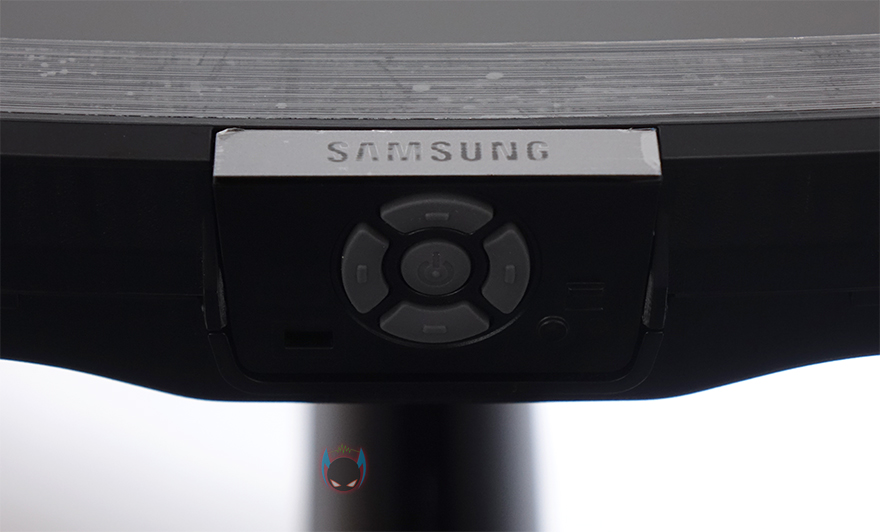 그럼, 이제 본격적으로 삼성 S6 S34A650U 모니터를 살펴보는데, 외형은 한눈에 봐도 일반적인 16:9 비율의 와이드모니터보다 더 넓다라는 것을 알 수 있죠. 좀 더 정확히 설명하자면, 21:9 비율의 34인치 울트라 와이드모니터입니다. 해상도는 3440x1440으로 울트라-WQHD 해상도를 가졌습니다. 여기에 작년부터 삼성이 세계 최초로 가장 먼저 적용하기 시작한 1000R 곡면율 커브드도 적용하고 있죠. 참고로 곡면율은 숫자가 낮을수록 더 많이 휘어진겁니다. 실제 전면에서 보면 기존의 1500R이나 1800R보다는 휘어짐 느낌이 강합니다. 그리고, 패널 테두리의 베젤 같은경우에는 윗부분과 좌우는 약 2mm의 얇은 폭으로 흔히 말하는 제로베젤로 처리되어 있으며, 아랫부분은 기본 약 17mm 폭 베젤과 함께 표면에 메탈 느낌을 주도록 약 13mm 폭을 헤어라인 디자인으로 적용했습니다. 그래서, 전체 베젤은 간단히 정리하자면, 3면 보더리스 디자인인거죠. 그리고, 아랫베젤 중앙 위치에 삼성 로고를 적용해놨으며, 같은 위치에서 밑바닥 방향에 전원버튼 및 메뉴 방향버튼이 적용되어 있습니다.