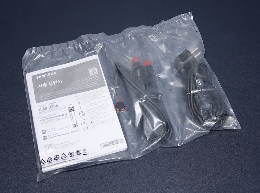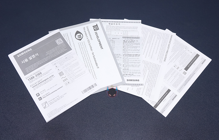 아무튼 그래서, 제품박스는 크게 화려하지 않지만, 제품의 주요 정보들은 담고 있습니다. 사이즈, 곡면율, 포트 지원, 운영체제 지원, 스탠드 기능 등을 표기해놨죠. 박스를 열어보면, 포장은 파손방지를 위해 스티로폼 소재가 사용되었습니다. 그리고, 구성품들은 모두 밀봉 포장을 했는데, 구성품에는 제품설명서 및 인증서/보증서, 전원케이블, HDMI, USB Type C-toC 케이블로 이루어져 있죠. 인증서에선 TCO인증을 확인할 수 있는데, 삼성 같이 글로벌 브랜드로 가치가 있는 대기업들은 대부분 IT제품에 지속적인 환경에 책임감 역할로 에코레벨이라 불리는 TCO인증을 받는 편입니다. 그리고, 제품설명서에는 당연히 모니터와 스탠드 조립법이 실려있죠. 또한, 스탠드 조절을 할 때 주의사항으로 아랫부분을 만지라고 언급하는데, 이부분은 뒤에서 다시 언급하겠습니다.