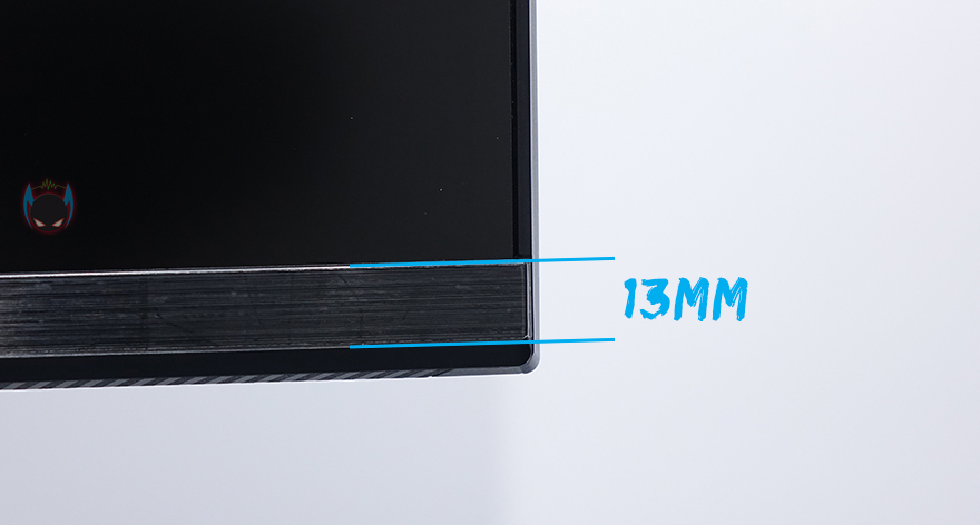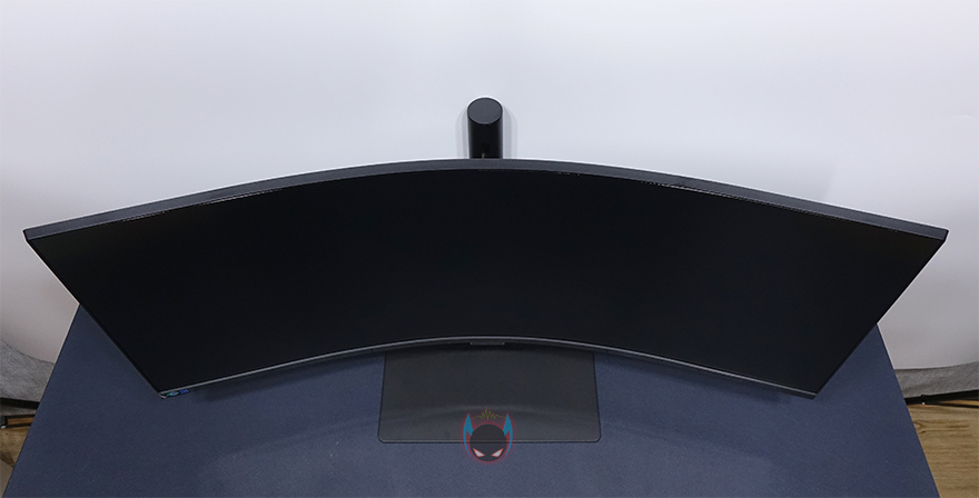 그럼, 이제 본격적으로 삼성 S6 S34A650U 모니터를 살펴보는데, 외형은 한눈에 봐도 일반적인 16:9 비율의 와이드모니터보다 더 넓다라는 것을 알 수 있죠. 좀 더 정확히 설명하자면, 21:9 비율의 34인치 울트라 와이드모니터입니다. 해상도는 3440x1440으로 울트라-WQHD 해상도를 가졌습니다. 여기에 작년부터 삼성이 세계 최초로 가장 먼저 적용하기 시작한 1000R 곡면율 커브드도 적용하고 있죠. 참고로 곡면율은 숫자가 낮을수록 더 많이 휘어진겁니다. 실제 전면에서 보면 기존의 1500R이나 1800R보다는 휘어짐 느낌이 강합니다. 그리고, 패널 테두리의 베젤 같은경우에는 윗부분과 좌우는 약 2mm의 얇은 폭으로 흔히 말하는 제로베젤로 처리되어 있으며, 아랫부분은 기본 약 17mm 폭 베젤과 함께 표면에 메탈 느낌을 주도록 약 13mm 폭을 헤어라인 디자인으로 적용했습니다. 그래서, 전체 베젤은 간단히 정리하자면, 3면 보더리스 디자인인거죠. 그리고, 아랫베젤 중앙 위치에 삼성 로고를 적용해놨으며, 같은 위치에서 밑바닥 방향에 전원버튼 및 메뉴 방향버튼이 적용되어 있습니다.