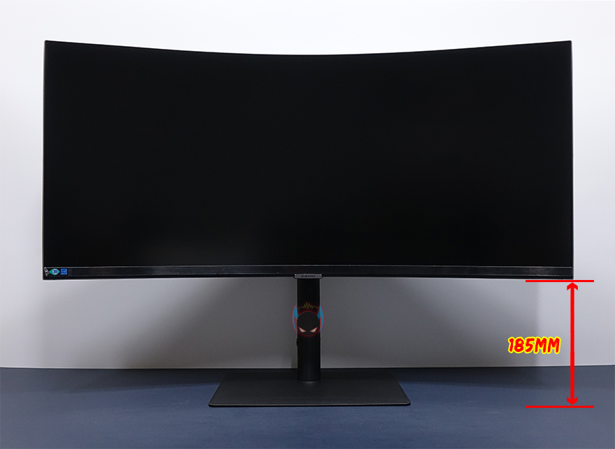 그리고, 삼성 S6 S34A650U 모니터는 스탠드 기능으로 높낮이조절/스위블/틸트 기능을 갖추고 있는데, 높낮이조절 같은경우 가장 아래로 내렸을 경우 바닥과의 높이는 약 61.5mm이며, 가장 높게 올렸을 때 바닥과의 높이는 약 185mm로, 제품사양에 표기된 120(±5)mm 범위를 충족하고 있습니다. 그리고, 스위블은 좌우로 30˚가량 움직일 수 있으며, 각도조절인 틸트경우는 앞뒤로 -2~25˚ 범위를 가졌습니다. 참고로 피벗 기능도 좌우로 2˚가량 살짝 갖추고 있는데, 사실상 사용할 일은 없다고 보면 됩니다. 그리고, 앞서 제품설명서에서 잠깐 언급듯이 이런 스탠드 기능을 수월하게 사용할 수 있도록 모니터 후면 아랫부분에 손잡이 홈 디자인을 적용하고 있죠. 실제로 사용해보면 상당히 편합니다. 그래서, 따로 패널 윗부분이나 좌우를 잡을 필요가 없습니다.