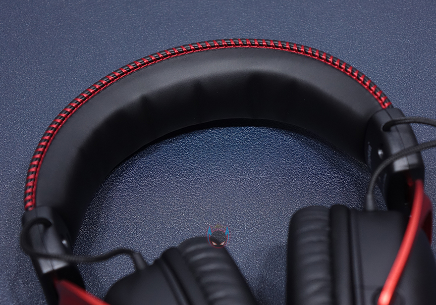 HyperX 클라우드2 무선 게이밍 헤드셋 디자인을 살펴보면, 앞서 제품박스에서도 이미지를 미리 확인했듯이, 전체적인 디자인은 먼저 나왔던 유선모델의 디자인에서 크게 벗어나지는 않습니다. 일단, 착용부분에서 헤드-밴드부분은 기존 제품과 마찬가지로 인조가죽을 사용했으며, 양쪽으로 레드색상의 미싱 마감처리를 했습니다. 물론, 바깥쪽에는 HyperX 로고를 새겨놨으며, 안쪽은 편안한 착용감을 위해 쿠션 디자인을 적용했죠.