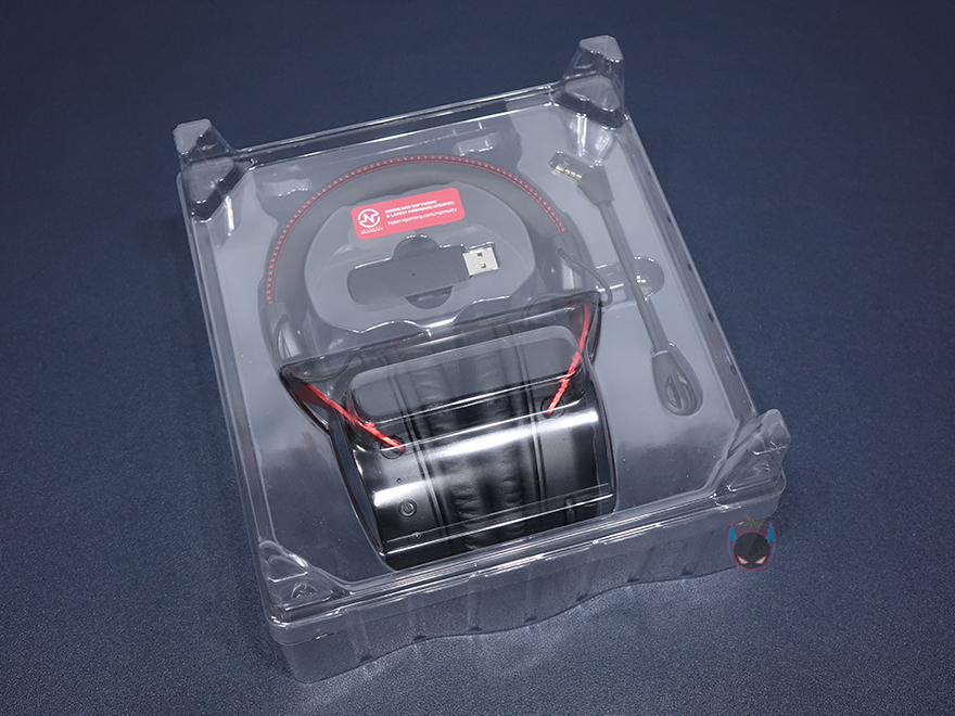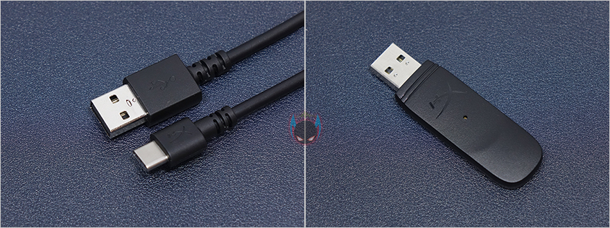 제품 포장은 제품크기에 맞춰서 투명-캡 방식으로 처리해 흔들지 않도록 했으며, 제품 구성은 클라우드2 무선 헤드셋, 분리형 마이크, USB수신기, 마이크 팝-필터, USB 충전케이블, 제품설명서로 이루어져 있으며, 충전케이블은 Type C-to-A 형태이며, USB수신기는 기존의 자사 제품들과 동일한 디자인을 가졌습니다.