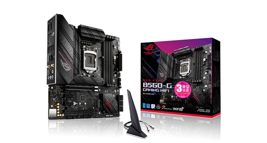 인텔은 그동안 자사 CPU를 오버클럭하기 위해선 오버클럭 지원 CPU와 메인보드를 함께 사용해야했죠. 특히, 메인보드의 제약이 심해서, CPU와 메모리 모두 오버클럭을 할려면, 무조건 Z시리즈 칩셋 메인보드를 사용해야했기 때문에 소비자들의 불만이 늘 있었습니다. 경쟁사 AMD 메인보드처럼 하위 칩셋에서 오버클럭이 지원되면, 소비자입장에선 조립PC구상 시 그만큼 메인보드 소비지출을 절감할 수 있는데, 인텔은 하위 칩셋 B시리즈와 H시리즈에서 오버클럭을 지원하지 않았기 때문에 필연적으로 비싼 Z칩셋 메인보드를 선택할 수 밖에 없었습니다. 하지만, 이번 인텔 11세대 CPU 등장과 함께 출시된 B시리즈와 H시리즈칩셋에서 드디어 일부 오버클럭으로 메모리 오버클럭이 지원되기 시작했죠. 이는 인텔 CPU를 선호하는 소비자들에게는 매우 반가운 소식입니다. 그래서, 요즘 B560 메인보드에 대한 관심이 높아졌는데, ASUS에선 대표 게이밍브랜드 ROG 라인업으로 M-ATX 플랫폼의 Strix B560-G Gaming WiFi 메인보드를 출시했죠. 그럼, 국내 정식유통사인 STCOM을 통해 출시한 ASUS ROG Strix B560-G Gaming WiFi 메인보드를 한 번 살펴보겠습니다.