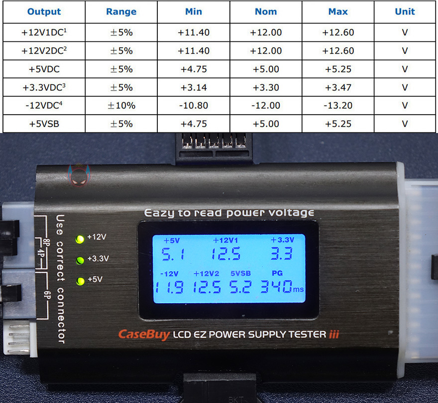 그럼, 실제로 맥스엘리트 맥스웰 게이밍프로 600W 파워서플라이를 사용해봐야겠죠?! 시스템 조립에 사용해보면, PC케이스 하단에 장착해도 가장 먼거리에 사용되는 메인보드 ATX보조전원 케이블이 충분히 연결되는 것을 확인할 수 있습니다. 그리고, 사용 전에 기본작동 상태에서 전압출력상태를 확인해보면, 파워서플라이 가이드 표준범위에서 안정적으로 출력되는 것을 확인할 수 있죠.