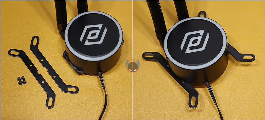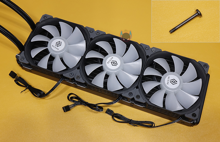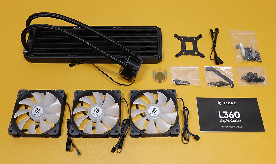 그럼, 직접 앱코 Ncore L360 일체형 수냉쿨러를 사용해봐야겠죠?1 일단, 장착법은 제공되는 설명서를 참고하면 초보자도 어렵지않게 장착할 수 있습니다. 최종적으로 워터블록과 백플레이트가 결합되기 때문에, 꼭 순서대로 진행할 필요는 없습니다. 필자 경우에는 먼저 기본 제공되는 120mm 팬 3개를 라디에이터에 장착을 했고, 3개의 팬을 하나로 속도조절 작동되게 제공해주는 3-in-1 전원케이블을 사용해 각 팬들을 연결해줍니다. 그 다음에는 워터블록에 자신이 사용하는 CPU 그러니깐 인텔과 AMD 각 CPU에 맞게 제공되는 브라켓을 설치해주면 됩니다. 필자의 경우는 인텔 CPU를 사용합니다.