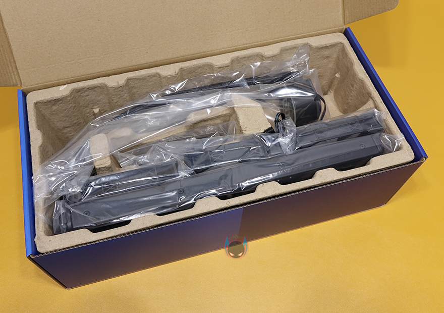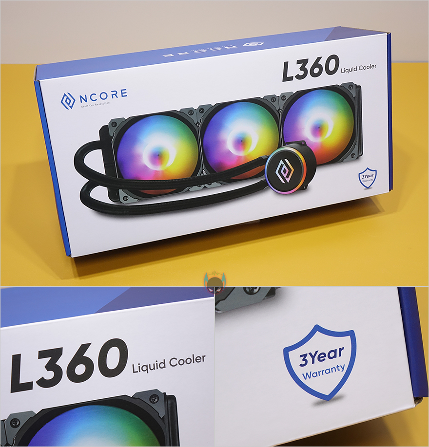 제품 포장은 일체형 수냉쿨러 제품에서 흔히 볼 수 있는 완충제 덮개 사용과 제품이 흔들리지 않게 캐비닛-틀 포장식으로 해놨으며, 구성품들은 모두 비닐 포장을 해놨습니다. 제품 구성운 Ncore L360 RGB 일체형 수랭쿨러, 120mm 팬 3개, 인텔 백플레이트, 3-in-1 전원케이블, CPU별 각 종 부속품, 제품설명서로 이루어져 있습니다. CPU별로 나뉘어지는 부속품들은 따로 다시 한 번 개별로 포장을 해놔서 분실이 되지 않게 해놨죠.