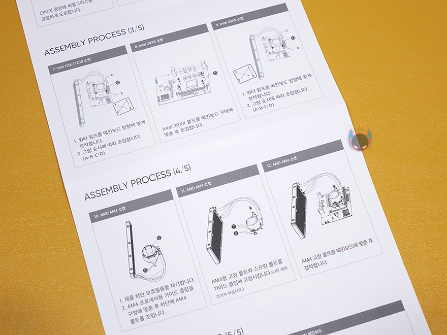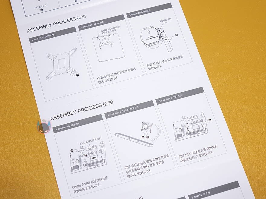 그럼, 직접 앱코 Ncore L360 일체형 수냉쿨러를 사용해봐야겠죠?1 일단, 장착법은 제공되는 설명서를 참고하면 초보자도 어렵지않게 장착할 수 있습니다. 최종적으로 워터블록과 백플레이트가 결합되기 때문에, 꼭 순서대로 진행할 필요는 없습니다. 필자 경우에는 먼저 기본 제공되는 120mm 팬 3개를 라디에이터에 장착을 했고, 3개의 팬을 하나로 속도조절 작동되게 제공해주는 3-in-1 전원케이블을 사용해 각 팬들을 연결해줍니다. 그 다음에는 워터블록에 자신이 사용하는 CPU 그러니깐 인텔과 AMD 각 CPU에 맞게 제공되는 브라켓을 설치해주면 됩니다. 필자의 경우는 인텔 CPU를 사용합니다.