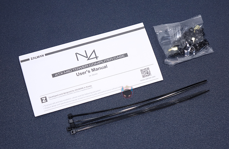 제품박스는 심플하게 전후면은 동일한 디자인으로 제품 이미지와 모델명, 그리고 강화유리가 장착되었다는 표기와 함께 제품의 주요 특징을 4가지 정도 언급하고 있는데, 바로 한쪽 측면에 한국어를 포함한 각 나라별 언어로도 표기를 해놔서 쉽게 이해할 수 있습니다. 그리고, 반대쪽 측면에는 제품의 기본 사양을 표기해놨는데, 요즘은 그래픽카드 길이, CPU쿨러 높이, 파워 깊이 길이까지 표기해주는 것은 기본이 되었죠. 이 제품 역시 부품 장착 길이에 대한 표기를 모두 해놨기 때문에 구입 전에 간섭여부를 어느정도 파악할 수 있습니다. 그리고, 좀 더 관심있게 보면 눈에 띄는 부분이 하나있죠. 바로, 전면에 장착된 팬이 3개인데, 140mm 팬이라는 점입니다. 일반적으로 120mm 팬을 3개 제공해주는 경우가 많은데, 이 제품은 이보다 더 큰 140mm 팬을 3개 제공해준다라는 거죠. 그리고, 케이스 포장은 기본방식인 비닐포장과 스티로폼 방식으로 외부 충격방지가 되도록 해놨으며, 부속품은 지퍼-백에 담아서 분실이 되지 않도록 했죠. 케이스를 제외한 부속품은 간단하게 제품설명서, 부품 장착에 필요한 스크류, 케이블타이 제공으로 이루어져 있습니다.