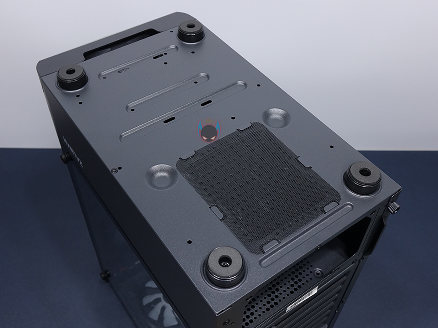 잘만 N4 i40 강화유리 PC케이스 외형부터 살펴보면, 전면베젤은 테두리 부분을 제외한 나머지 부분을 메쉬(타공망) 디자인으로 처리해놨으며, 앞서 기본사양 표기에서 확인했듯이, 외부에서 내부 140mm 팬이 3개 장착되었다라는 것도 미리 간접적으로 볼 수 있습니다. 물론, 시작에서 언급한대로 이 3개의 팬들은 모두 RGB 팬이죠. 그리고, 베젤 측면에도 외부 공기가 어느정도 유입되도록 홀 처리를 해놨습니다. 케이스 상단은 앞자리에 버튼과 포트 배치로 왼쪽부터 전원버튼, USB 2.0, MIC/EAR, USB 2.0, USB 3.0, 리셋 버튼 순으로 배치되어 있으며, 그 뒤로는 자석방식의 먼지 필터가 부착되어 있는데, 필터를 분리하면 상단 쿨링효과를 위해 에어홀 처리가 적용된 것을 확인할 수 있고, 앞에서 언급대로 내부에 120mm 팬이 기본 2개 장착되었다라는 것도 미리 확인할 수 있습니다. 물론, 이 팬들 역시 RGB 팬이죠.