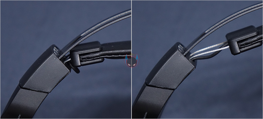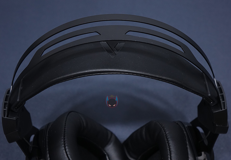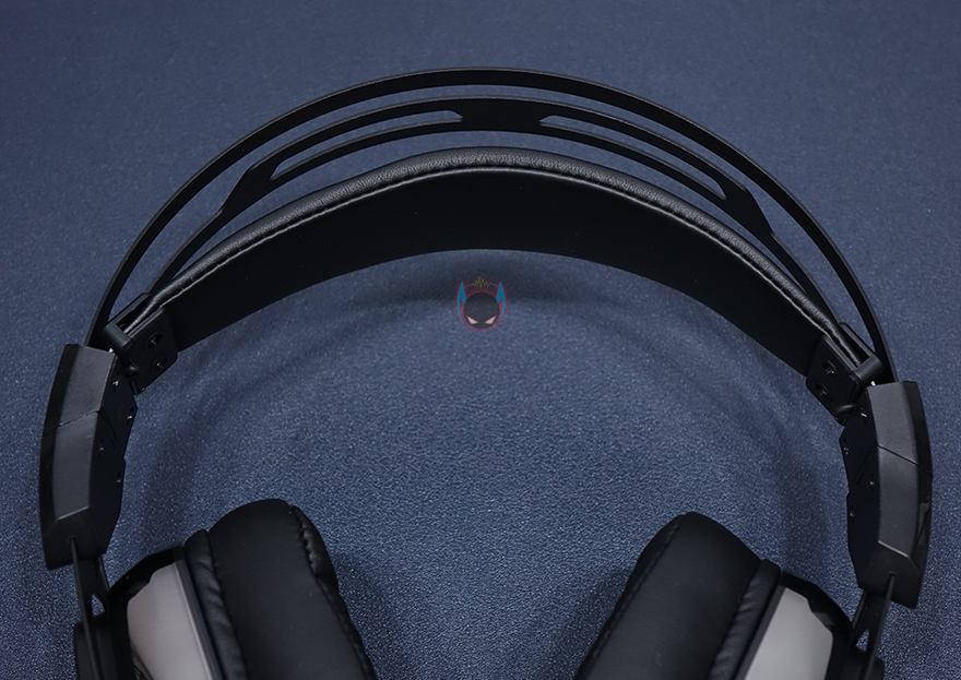 그럼, RAPOO VH710 게이밍 헤드셋 외형 즉 디자인을 살펴보면, 일단 헤드밴드부분은 기존의 자사 제품들 대부분이 그랬던 것처럼 와이어 방식을 적용하고 있습니다. 그러니깐 바깥쪽에 고정 스틸 프레임을 적용하고, 안쪽에 착용시 자동 길이조절이 되는 밴드가 적용된 형태인거죠. 물론, 인조가죽을 사용했으며, 자동조절이므로 와이어가 사용되었습니다.