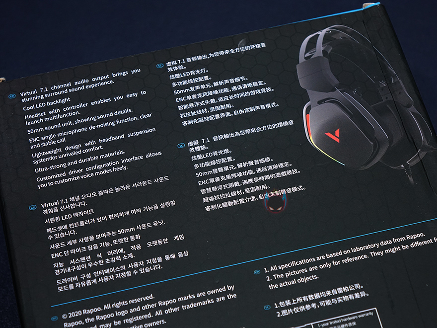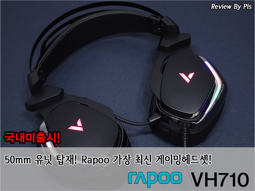 요즘 게이밍 헤드셋 제품들은 저가형부터 고가형까지 가격불문하고 가상 7.1채널 사운드를 기본 지원하는 경우가 많죠. 여기에 드라이버 유닛도 최소 50mm이상으로 갖추고 나오는 제품들이 다수입니다. 쉽게 말해, 이게 요즘 게이밍헤드셋 트랜드 사양이라는거죠. 중국&독일 주변기기 브랜드인 Rapoo 역시 그동안 40mm 드라이버 유닛을 게이밍 헤드셋에 많이 적용했는데, 최근에 출시한 제품들부터는 본격적으로 50mm 크기를 적용하기 시작했습니다. 그 중 VH710은 현재 Rapoo의 가장 최근에 출시한 게이밍헤드셋입니다. 그럼, 50mm 드라이버 유닛탑재의 RAPOO 게이밍 헤드셋 VH710을 한 번 살펴보도록 하죠~