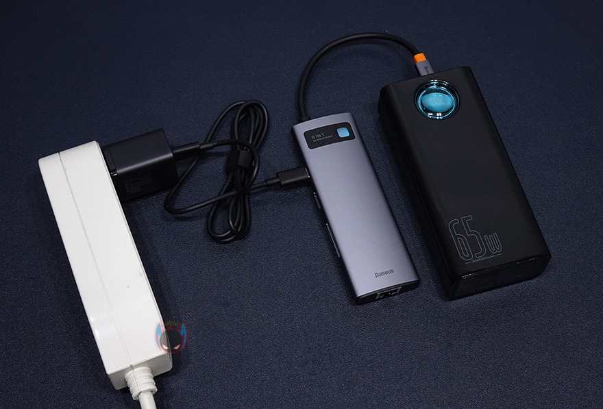 그리고, 앞서 USB Type-C 포트가 충전 지원도 함께 갖추고 있다고 했는데, 충전 기능으로 사용하고 싶은 때는 USB Type-C 포트를 충전어댑터와 연결하고, 본체에 달린 USB Type-C 케이블을 모바일기기나 보조배터리에 연결하면, 충전기능이 작동됩니다. PD 100W까지 고속충전을 지원하기 때문에 노트북, 태블릿PC, 스마트폰 등 왠만한 고속충전 지원 제품들은 다 사용이 가능하다고 보면 되겠습니다.