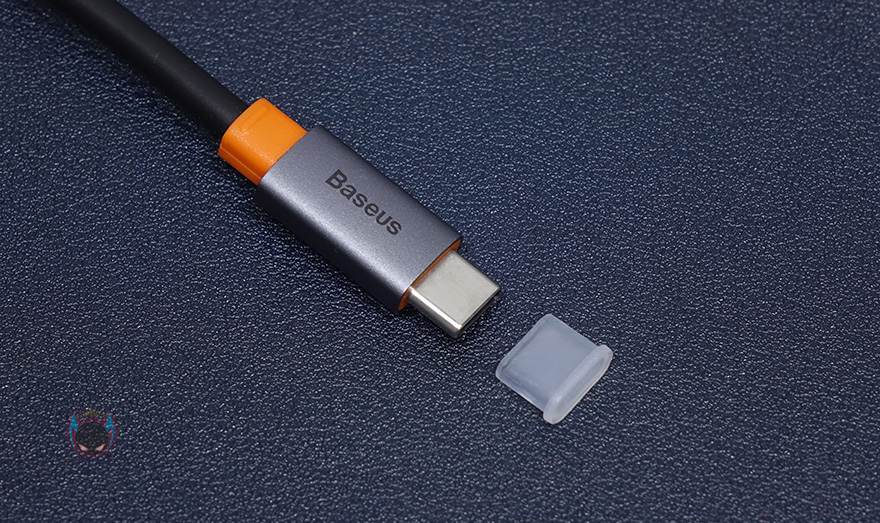 노트북이나 모바일기기에 연결되는 USB 케이블 길이는 총 18cm이며, 인터페이스는 USB Type-C 형태로 사용하지 않을 시 먼지 유입 방지로 덮개를 제공해주고 있습니다. 물론, 휴대할 때 케이블 정리와 함께 포트를 보관할 수 있게, 본체 전면에 소켓 구멍도 적용이 되어있죠. 덮개를 잃어버려도 포트를 기본적으로 보관할 수 있다라는 이야기입니다.