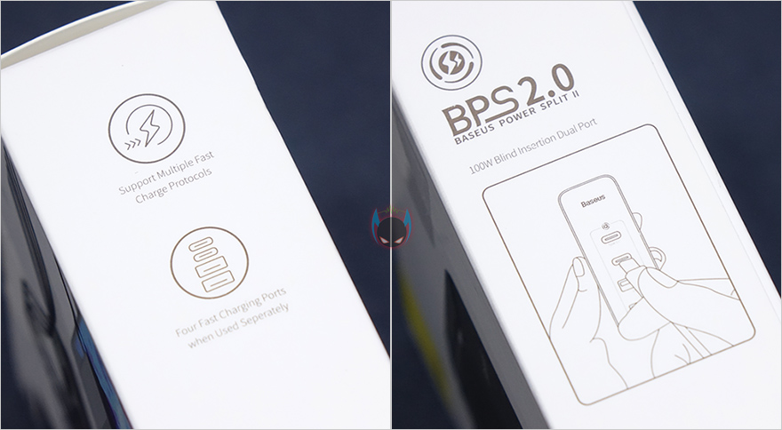 베이스어스 GaN2 프로 고속충전기는 액세서리 제품이기 때문에 제품팩키지 형태는 박스형태입니다. 그리고, 전면에는 제품 이미지를 확인할 수 있는데, 포트가 4개인 것을 미리 알 수 있죠. 참고로, GaN2 프로 고속충전기는 포트 1개를 갖춘 모델도 있습니다. 그리고, 45W이상의 고속충전을 지원하기 때문에 당연히 GaN(질화갈륨) 물질을 사용해 만들어졌습니다. 이는 모델명과 함께 표기된 것을 쉽게 확인할 수 있으며, 2C+2U라는 문구는 방금 이미지로 확인했듯이, USB Type-C 포트 2개와 Type-A 포트 2개를 의미하는거죠. 이렇게 여러 개의 포트를 갖추고 있기 때문에 박스 측면에 주요 특징으로 멀티 고속충전 지원 표기를 해놨습니다.