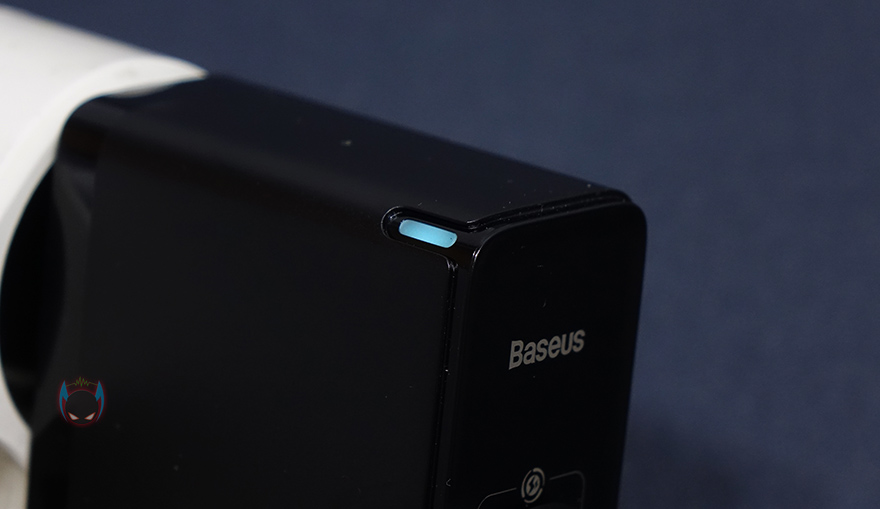 실제로 베이스어스(Baseus) GaN2 프로 고속충전기를 사용해보면, 일단 포트 하나만 사용해도 고속충전이 작동되는 것을 확인할 수 있는데, 앞서 언급했듯이 최소 15W부터 지원하기 때문에, 10W나 5W 충전의 기기를 연결하면 안됩니다. 그리고, 2개의 이상의 기기를 연결해서 충전할 때도 고속충전이 진행되는 것을 볼 수 있는데, 앞서 충전 표기에서 확인했듯이 각 포트별로 분산되어 고속충전이 되는 방식입니다. 물론, 이런 방식으로 사용했을 때도 USB Type-C 포트는 최대 65W까지 지원한다고 언급했는데, 실제로 스마트폰과 보조배터리 2개를 연결 이 중 보조배터리 1개는 최대 65W 충전지원을 하는데, 3개가 연결된 상태에서 확인해 본 결과 55~60W로 충전되는 것을 확인할 수 있었고, 실제로 65W 지원의 20,000mAh 보조배터리 1시간 가량 충전했을 때 60W가량 충전되는 것을 확인할 수 있었습니다. 그리고, 충전기 사용시 LED 램프는 블루 색상입니다.