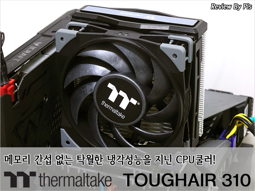 요즘 CPU쿨러 시장을 보면 트랜드에 맞춰서 LED효과를 지닌 제품들이 많습니다. 쉽게 말해 기본 제공되는 팬이 RGB 팬이라는거죠. 하지만, 이런 제품들은 쿨러의 본질적인 면보다 말그대로 트랜드에 따른거라 시스템의 냉각성능을 좀 더 중요시 생각한다면, CPU쿨러는 단연 냉각성능을 우선시 생각하고 선택해야합니다. 그리고, 여기에 기왕이면 메모리 4개 모두 사용할 수 있게 간섭까지 없으면 더할 나위가 없죠. 최근에 써멀테이크에선 바로 이런 컨셉의 CPU쿨러를 출시했는데, 바로 TOUGHAIR 310 모델입니다. 그럼, 써멀테이크 TOUGHAIR 310 CPU쿨러를 한 번 살펴보도록 하겠습니다.