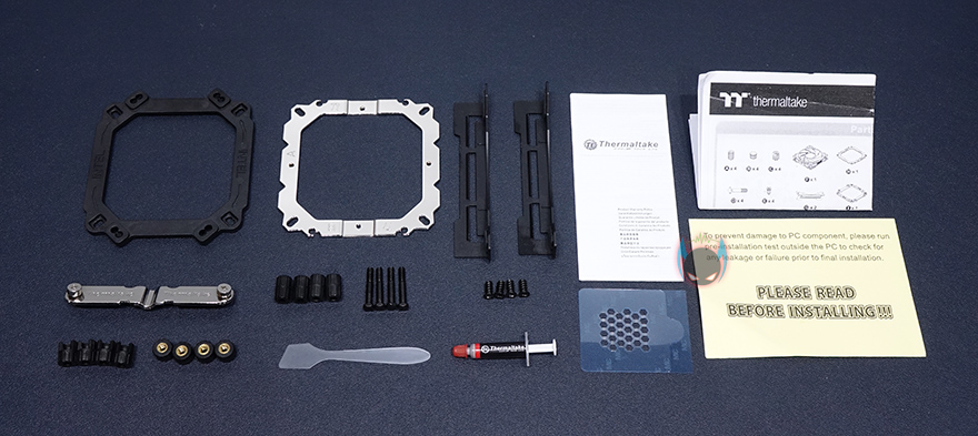 박스를 열어보면, 쿨러는 외부 충격방지를 위해 우레탄-폼 포장재로 포장을 해놨으며, 부속품들은 분실이 되지 않게 별도의 박스 포장을 해놨습니다. 제품구성은 TOUGHAIR 310 쿨러, 120mm 팬, 공용 백플레이트 및 마운트, 팬 클립, 리텐션, 스탠드-오프, 마운트 스크류, 백플레이트 스크류, 팬 스크류, 써멀그리스, 주걱, 써멀그리스 테잎가이드, 제품설명서로 이루어져 있는데, 써멀그리스를 편하게 바를 수 있게 테잎가이드를 제공해주고 있어서, 초보자들에게는 편리하다 할 수 있겠습니다.