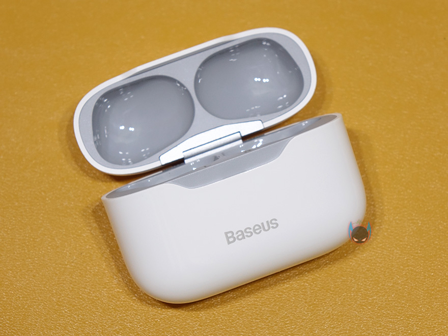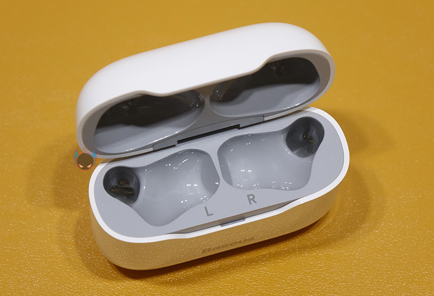 그럼, 베이스어스 SIMU S1 무선이어폰 충전케이스무서 살펴보면, 색상은 블랙과 화이트 2가지 색상으로 출시되었으며, 무선충전까지 되는 S1 Pro는 블루색상을 가지고 있습니다. 케이스 무게는 약 36g이며, 이어폰까지 보관했을 시 무게는 약 45g입니다. 케이스 전면에는 베이스어스 로고를 새겨놨으며, 후면에는 페어링 버튼이 적용되어 있죠. 그리고, 밑바닥부분에는 USB 충전케이블과 연결되는 충전포트로 USB Type-C 포트가 적용되어 있고, 케이스를 열어보면 이어폰 수납공간과 함께 좌우 구분 표시와 뚜껑이 열고 닫히는 경계부분에 페어링 상태 및 충전 상태를 확인할 수 있는 LED 인디케이터 적용되어 있습니다. 참고로 페어링과 배터리 완충 상태일 때는 화이트 색상을, 충전중일때는 레드색상을 보여줍니다. 그리고, 충전케이스 배터리용량은 앞서 제품 사양표기에서 확인했듯이 380mAh용랴을 가졌고, 음악재생 기준으로 최대 20~24시간 사용할 수 있습니다.