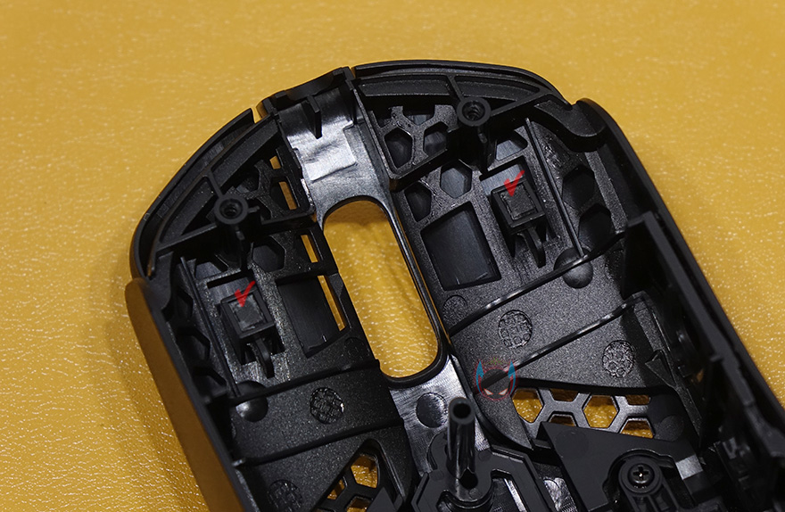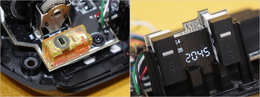 이번엔 하이퍼X 펄스파이어 헤이스트 게이밍마우스의 내부를 잠깐 살펴보는데, 내부 마감처리는 상당히 깔끔하며, 좌우버튼의 클럭 정확도를 위해 버튼 커버 안쪽 클릭 위치부분은 ㅁ자 형태로 처리된 것을 확인할 수 있습니다. 그리고, 센서과 MCU칩셋이 위치한 부분에는 팜-레스트부분의 타공망처리가 적용되어 있기때문에 외부로부터 먼지 유입 많아지거나 불순물 유입방지를 위해 고무 쉴드처리를 해놨으며, 좌우버튼 스위치도 일반적으로 많이 사용되는 옴론스위치가 아닌 TTC 스위치로 역시 평범한 스위치가 아닌 방진코팅이 적용된 고급 스위치를 사용했습니다. 참고로 클릭수명은 6천만회입니다. 그리고, 측면버튼은 아직 알려지지 않은 브랜드의 스위치를 사용했습니다.