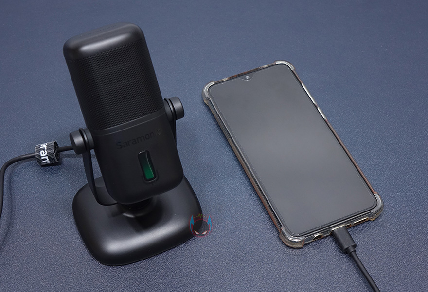 직접, 사라모닉 SR-MV2000 USB 콘덴서 마이크를 사용해보면, PC와 모바일기기 어느쪽이든 제공되는 USB 케이블은 마이크와 연결할 기기에 연결해주면, 바로 마이크 전원이 들어오고 별도의 드라이버 설치없이 바로 사용할 수 있는 플러그앤플레이 장치입니다. 마이크에 전원이 들어보면 전면에 배치된 LED 인디케이터의 색상을 볼 수 있는데, 기본 색상은 녹색으로 녹색 LED는 수음되는 소리 게이지와 게인(Gain) 조절 상태를 보여주는 것으로, 게인 조절은 밝기에 따라 쉽게 구분이 되고, 소리가 수음될 때는 게이지형태로 즉각 반응하며 보여줘서 정상적으로 작동되고 있는지 쉽게 알 수 있습니다.