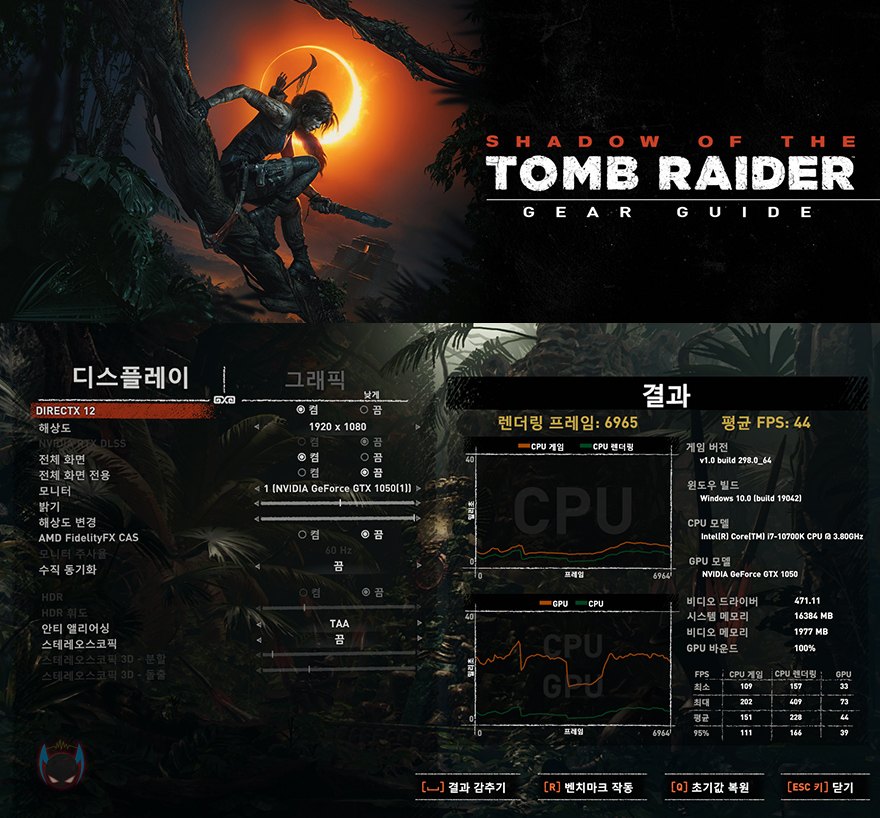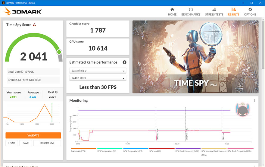 직접, ARKTEK 지포스 GTX1050 그래픽카드를 간단히 사용해보면, 일단 성능 확인을 위해 인텔 i7-10700K CPU와 메모리 16GB에서 진행했을 시, 3DMark 프로그램을 통해 점수가 19000~2000점대로 나오면 정상적인 성능이라보는데, 실행결과 약 2000점대로 나오는 것을 확인할 수 있습니다. 앞서 잠깐 언급했지만, 지포스 GTX1050은 보급형 그래픽카드에 속하기 때문에 고사양 게임까지 커버하기는 힘듭니다. 그래서, 자신이 어떤 게임을 하는가에 따라 사실상 선택해야하는 그래픽카드라 할 수 있는데, 실제로 일부 게임들을 벤치마크해보면, 그래픽엔진이 높지 않은 게임들은 지포스 GTX1050으로도 충분히 소화할 수 있는 프레임이 나오는 것을 확인할 수 있고, 고사양의 게임은 기본 옵션으로 플레이는 힘들기 때문에 옵션을 낮춰서 플레이 해야합니다. 따라서, 자신이 플레이하는 게임이 고사양을 요구하는 게임이 아니라면 보급형으로 타협할 수 있는 지포스 GTX1050을 선택하는 것도 가격적인 부분에서 현명하다 할 수 있습니다.