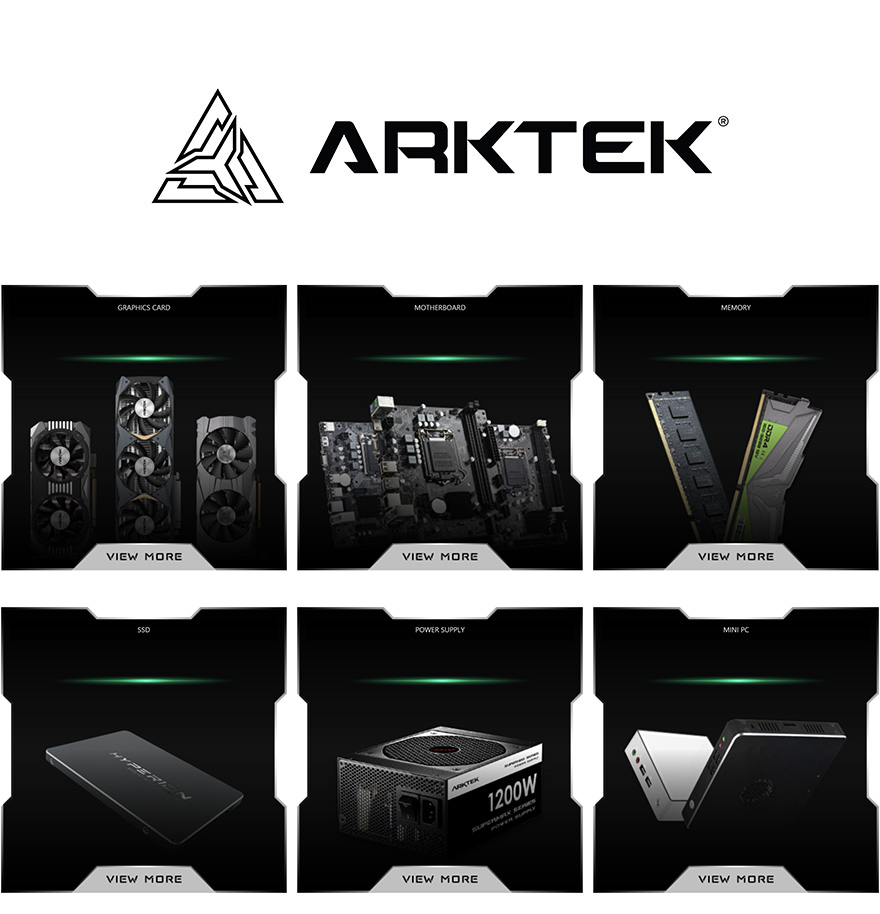 ARKTEK에 대해서 좀 더 소개를 하자면, 2006년에 설립된 ARKTEK은 그동안 유명 브랜드의 제품들을 OEM/ODM 생산해 온 제조업체입니다. 흔히, 이런 제조업체들이 자체 브랜드로 제품을 내놓으면 기존에 사용하던 생산 라인이 있기 때문에, 유명 브랜드 제품의 디자인과 유사한데, ARKTEK 역시 자체 출시된 제품들을 찾아보면, 유명 브랜드의 제품과 유사한 디자인을 가진 일부 제품들을 볼 수 있습니다. 그래서, ARKTEK 역시 이런 유명 브랜드의 제품들을 제조해왔기 때문에, 기술력에선 이미 보장을 해준다고 할 수 있습니다. 또한, 시작에선 그래픽카드만 소개했지만, ARKTEK은 그래픽카드뿐만 아니라 메인보드, 메모리, 파워서플라이, SSD 등의 다른 PC부품들도 제조하죠.