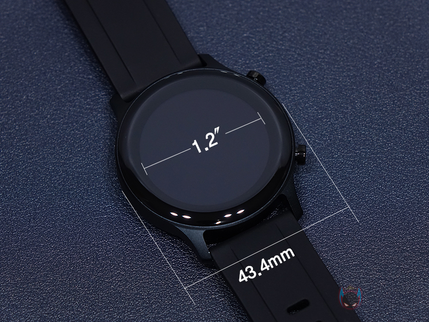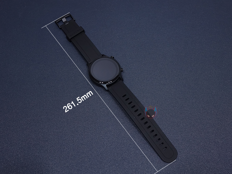 샤오미 헬로우 RS3 스마트워치의 실물을 살펴보면, 색상은 전체적으로 블랙색상이며, 1가지 색상으로 출시되었습니다. 시계의 총 길이는 261.5mm이고, 시계 두께는 12mm로 현재 표준적으로 많이 선택되는 스마트워치의 크기라 할 수 있죠. 사실 의외로 스마트워치 시계 두께에 따라서 호불호로 갈리는경우도 많은데, 12mm 두께면 현재 삼성이나 애플 같은 유명브랜드에서도 많이 선택하는 두께이기 때문에 두꺼운 편은 아닙니다. 그리고, 시계 형태는 원형 디자인으로 시계 자체 지름은 43.4mm지만, 안쪽에 이너베젤이 적용되었기 때문에, 사실상 화면으로 보여주는 크기는 1.2인치 입니다. 먼저 나왔던 솔라(LS05)나 RT(LS05S)가 1.28인치였는데, 조금 줄어들었죠. 그래도 화면으로 보여주기에는 부족하지 않습니다. 그리고, 디스플레이 소재는 이미 언급했듯이 아몰레드가 사용되었고, 완전 평면이 아닌 테두리 곡면으로 처리되어 있습니다.