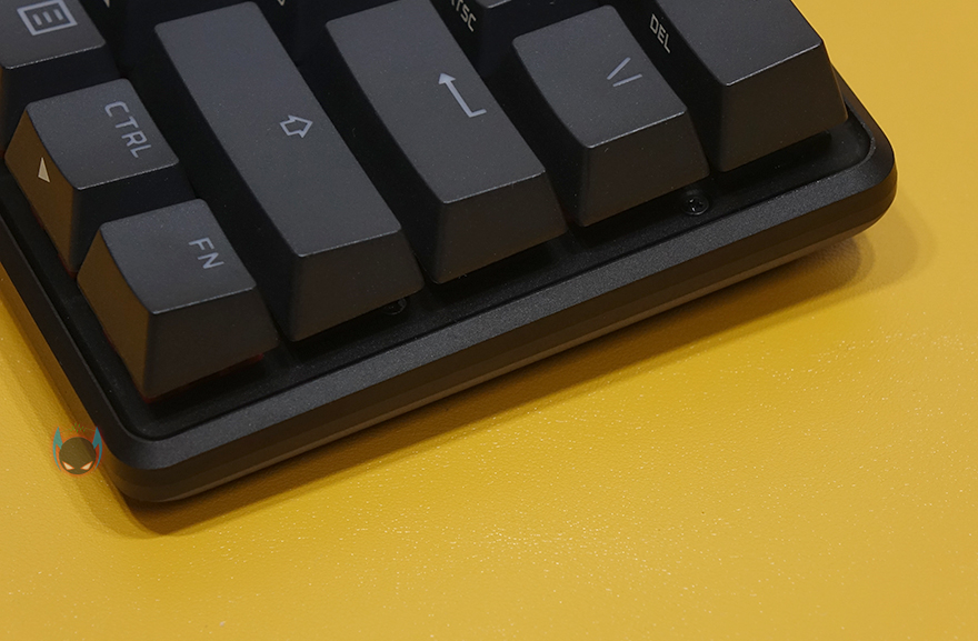 하이퍼엑스 Alloy Origins 60 키보드 레이아웃을 살펴보면, 색상은 역시 기존 제품들처럼 블랙계열이고, 총 61키를 가진 미니 키보드형태입니다. 하우징 재질 역시 알루미늄합금이 사용되었고, 키-스타일이 키-캡 아래가 노출된 비키-스타일이기때문에, 상판이 보강판 역할을 동시에 합니다. 그리고, 키보드 전면에서 봤을 때, 오른쪽에 분리형 USB 전원케이블과 연결되는 USB Type-C 포트가 배치되어 있죠.
