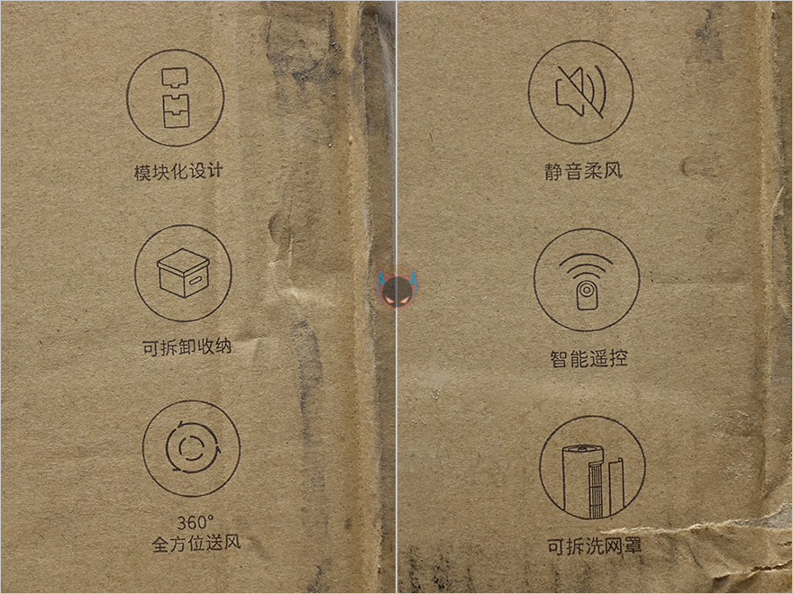 제품박스부터 살펴보면, 전후면에 타워 선풍기(Tower Fan)이라는 표기와 함께 360도 표기를 확인할 수 있죠. 말그대로 타워 선풍기로 360도 방향 바람을 보낸다는 의미입니다. 그리고, 제품 이미지를 보면, 타워형인 동시에 분리가 가능하다라는 것도 이미 짐작 할 수 있죠. 이 밖에 주요 특징으로 분리와 보관, 360도 방향, 저소음, 무선 리모컨, 필터분리를 언급하고 있는데, 모두 뒤에서 하나씩 확인을 해보도록 하고, 360도 방향은 박스 측면에 그림과 함께 자세히 언급하고 있는데, 3단으로 분리되는 각 타워 팬을 최대 120도 방향씩 장착할 수 있어서, 360도 방향으로 바람을 보낼 수 있다라는 것을 의미합니다. 그리고, 반대쪽 측면에는 제품의 기본 사양 표기도 확인할 수 있죠.(별도의 포장박스없이 제품박스자체로 배송이되었기 때문에 박스상태가 깨끗하지 못한점 양해바랍니다.)