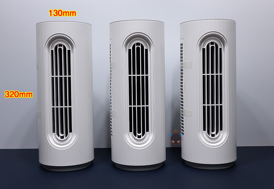 그럼, Edon E360 타워 선풍기를 살펴보는데, 먼저 3개로 분리되는 타워 팬부터 살펴보면, 각 팬마다 높이는 320mm이고, 지름은 130mm 입니다. 그리고, 바람이 나오는 전면에는 타원형 디자인의 에어홀을 볼 수 있으며, 반대편에는 필터가 장착된 것을 확인할 수 있죠. 필터는 윗부분에 나사를 풀면 쉽게 분리가 되고, 메탈재질이기 때문에 물세척으로 관리하면 됩니다. 그리고, 필터를 분리하면 내부에 장착된 타워형 날개를 확인할 수 있습니다.