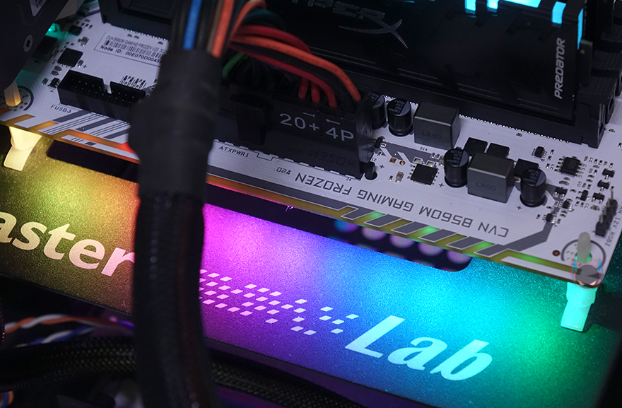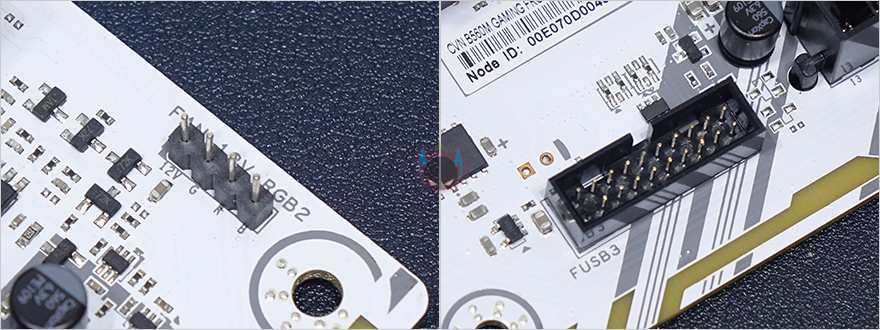 컬러풀 CVN B560M GAMING FROZEN 메인보드 레이아웃을 살펴보면, 역시 가장 먼저 눈에 들어오는 부분은 PCB기판의 색상이라 할 수 있습니다. 전후면 모두 올 화이트 계열 색상으로 처리했죠. 예전부터 늘 그랬지만, 메인보드 시장에선 화이트 색상이 흔하지 않습니다. 더군다나 컬러풀 CVN 시리즈처럼 연달아 꾸준히 모델을 출시하는 것도 드물죠. 그래서, 일단 화이트색상만으로도 일부 소비자들은 끌릴 수 밖에 없습니다. 그리고, 앞서 제품 풀-샷 이미지에서 미리 봤듯이 메인보드 맨 오른쪽 일부에는 RGB 라이팅효과를 볼 수 있게 PCB기판 후면에 LED까지 적용되어 있습니다.