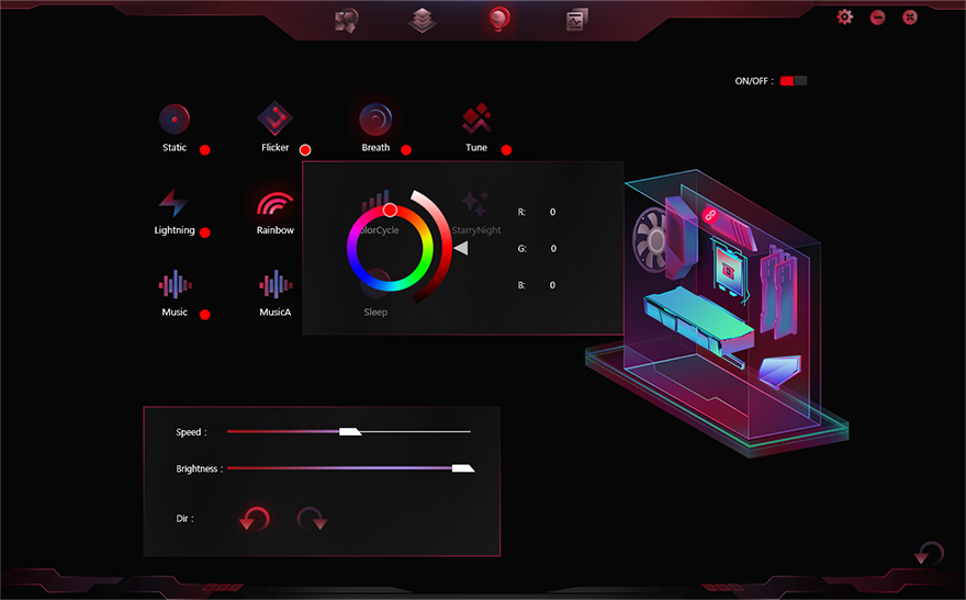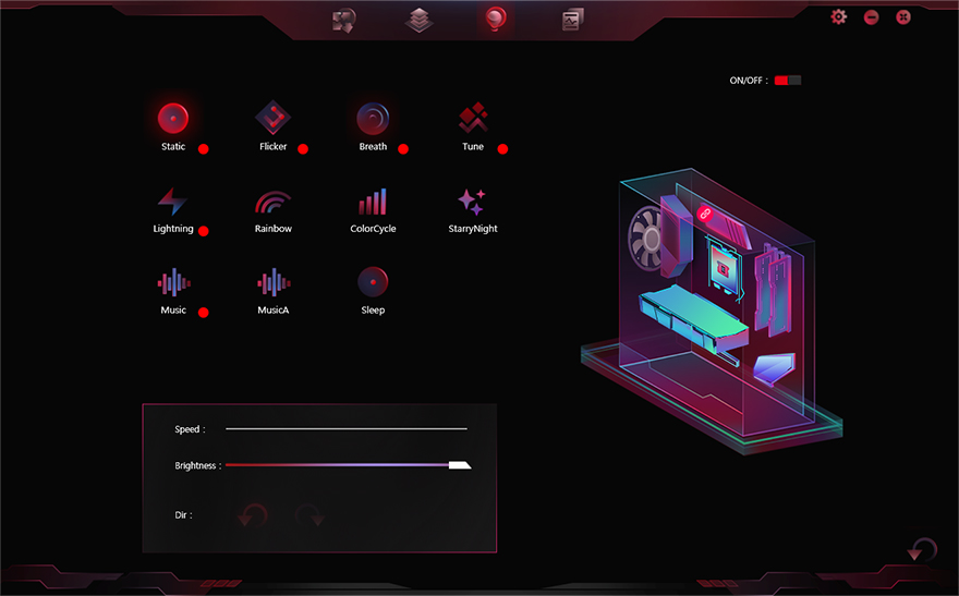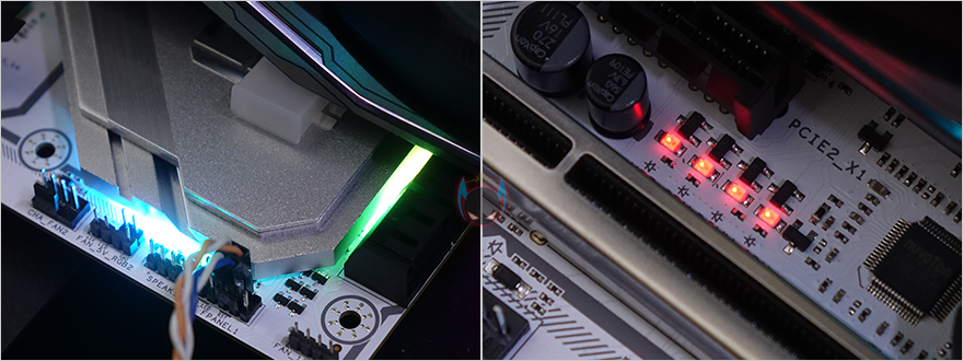 직접, 컬러풀 CVN B560M GAMING FROZEN 메인보드를 사용해보면, 일단 전원이 들어왔을 때 PCB 오른쪽에 적용된 RGB 라이팅효과를 바로 확인할 수 있습니다. 그리고, 추가로 B560 칩셋이 위치한부분에도 RGB 라이팅효과가 있죠. 또한, PCIe x1 슬롯 아랫부분에는 부팅 작동상태를 확인할 수 있는 LED 디버그도 적용되어 있는 것을 확인할 수 있습니다. 당연히 RGB 라이팅부분들은 이전 B460 메인보드 때와 마찬가지로 iGameCenter 공용 소프트웨어에서 조명 메뉴를 통해 다양한 모드효과로 전환할 수 있습니다. 총 11가지 모드를 지원하고, 컬러풀의 그래픽카드나 메모리 제품을 사용한다면 함께 연동도 가능하며, 이외에 외부적인 RGB 팬들도 당연히 12V RGB헤더나 5V ARGB 헤더에 연결하면 라이팅효과를 연동해서 사용할 수 있습니다.