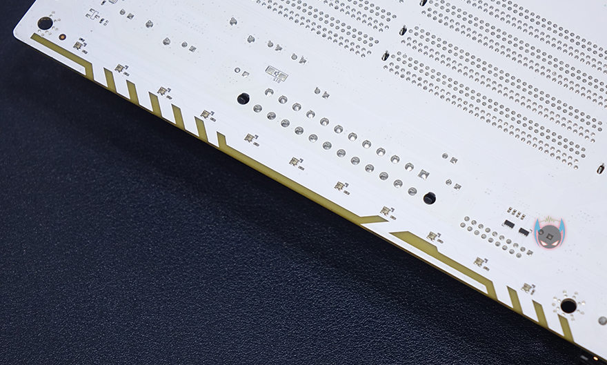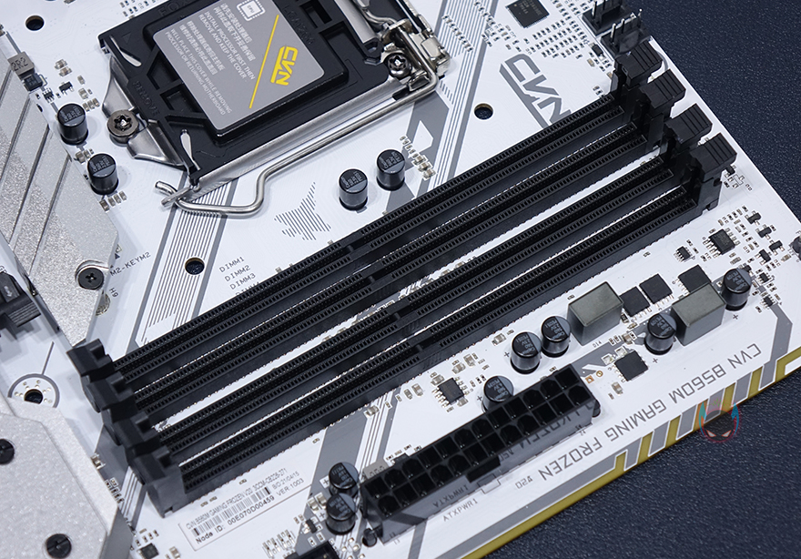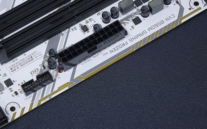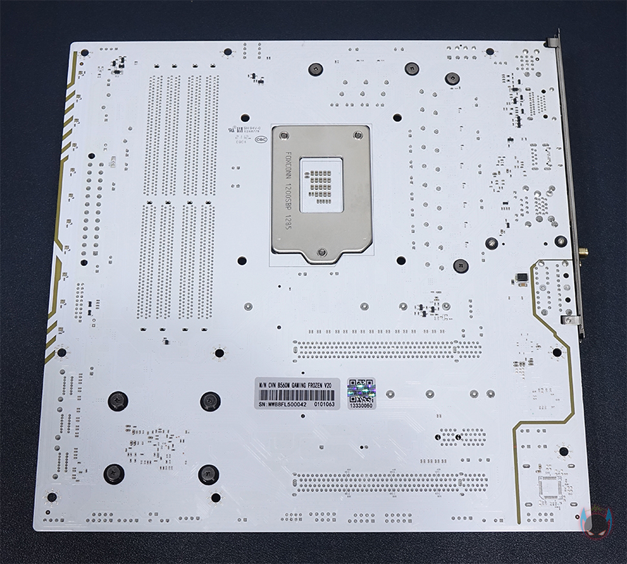 컬러풀 CVN B560M GAMING FROZEN 메인보드 레이아웃을 살펴보면, 역시 가장 먼저 눈에 들어오는 부분은 PCB기판의 색상이라 할 수 있습니다. 전후면 모두 올 화이트 계열 색상으로 처리했죠. 예전부터 늘 그랬지만, 메인보드 시장에선 화이트 색상이 흔하지 않습니다. 더군다나 컬러풀 CVN 시리즈처럼 연달아 꾸준히 모델을 출시하는 것도 드물죠. 그래서, 일단 화이트색상만으로도 일부 소비자들은 끌릴 수 밖에 없습니다. 그리고, 앞서 제품 풀-샷 이미지에서 미리 봤듯이 메인보드 맨 오른쪽 일부에는 RGB 라이팅효과를 볼 수 있게 PCB기판 후면에 LED까지 적용되어 있습니다.