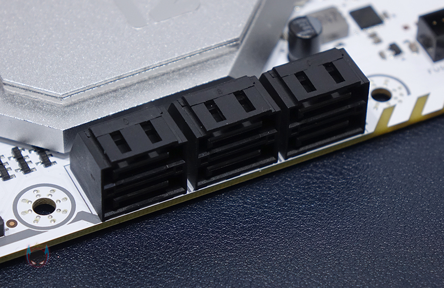 메모리 슬롯은 4개이며 총 최대 128GB 용량을 탑재할 수 있으며, 클럭은 최대 3200MHz까지라고 표기되어 있는데, B560 메인보드부터 메모리 오버클럭이 가능하기 때문에, 이부분은 실제로 뒤에서 좀 더 확인을 해보겠습니다. 그리고, 슬롯 주변에는 12V RGB 헤더와 USB 3.2 내부 헤더가 배치된 것을 추가로 확인할 수 있고, 아랫쪽으로 S-ATA 커넥터 6개가 배치된 것도 확인할 수 있습니다. 그리고, 같은 위치에서 맨 아랫부분에 주요 헤더 배치들 사이로 12V RGB 헤더와 5V ARGB 헤더가 적용된 것도 확인할 수 있죠.