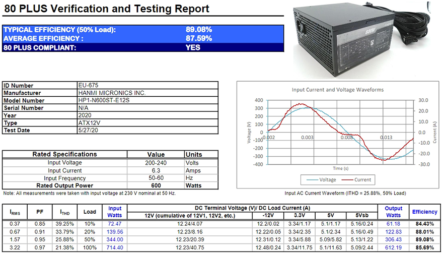 그리고, 클래식2 풀-체인지 600W 파워서플라이 경우 앞서 제품박스 표기에서 확인했듯이 80Plus 스탠다드 등급 인증을 받은 제품이죠. 실제로 80Plus에 등록된 클래식2 풀-체인지 600W 파워서플라이의 전력효율을 확인해보면, 평균 효율은 약 87%, 50% Load 상황에선 약 89%대의 효율을 가졌다고 보고되어 있는데, 눈여겨볼 부분은 나머지 20%와 100% Load 상황도 각각 88%와 85%대인 것을 확인할 수 있습니다. 즉, 등급은 스탠다드 등급을 받았지만, 과부하가 걸리는 Load 상황에선 이보다 한단계 등급이 높은 브론즈 등급의 효율을 가졌습니다. 사실상 소비자입장에선 가격대비 브론즈등급 효과를 보는거라 이득을 본다 할 수 있죠.
