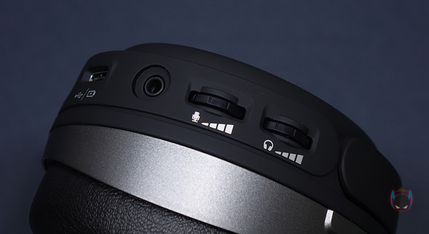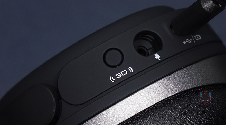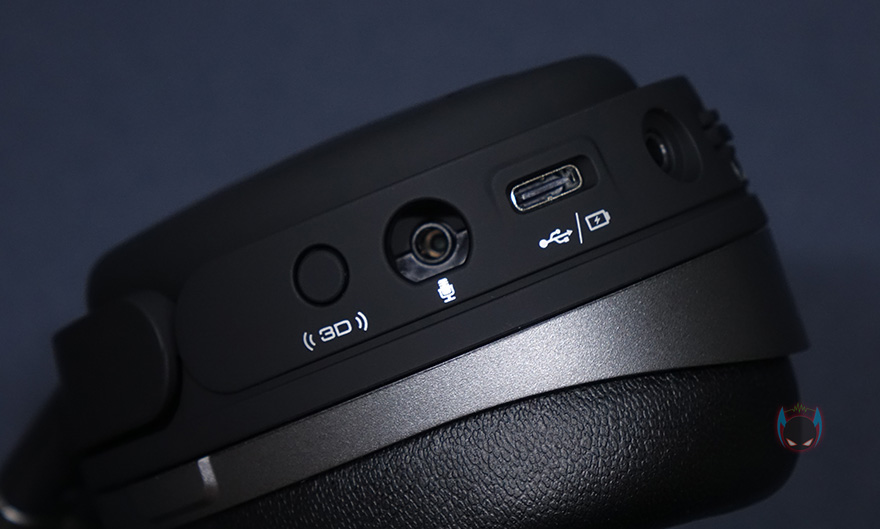 이어-컵 부분은 양쪽 모두 바깥쪽에 하이퍼엑스 로고를 새겨놨으며, 기능들은 모두 왼쪽 이어-컵에 적용되어있는데, 로고부분 위 아래로 각각 마이크 On/Off와 전원버튼이 적용되어 있습니다. 클라우드 오르빗 S(Cloud Orbit S) 헤드셋 제품이 유선인데 왜 전원버튼이 있을까 생각할 수 있는데, 앞서 언급한 Waves Nx의 3D오디오와 헤드 트래킹 기능, 제어 기능들 그리고, 드라이버유닛이 평판형이기 때문입니다. 이부분은 바로 뒤에서 다시 언급하죠. 그리고, 이어-컵 아랫부분에 3D오디오 버튼, 분리형 마이크 포트, USB Type-C 충전/전원케이블 포트, 3.5mm 오디오 케이블 포트, 마이크 볼륨조절 노브, 헤드셋 볼륨조절 노브가 적용되어 있죠. 왼쪽 이어-컵에 모든 컨트롤 기능이 적용되어 있기때문에, 착용해서 컨트롤 할 때는 조금 적응이 필요한 부분도 있겠습니다.